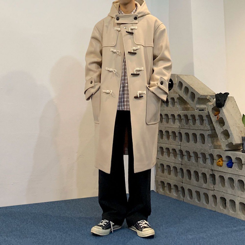 MYQ 겨울 모직 코트 남자 한국식 유행 중견 남자 코트 느슨한 후드 두꺼운 모직 코트스토어 가기