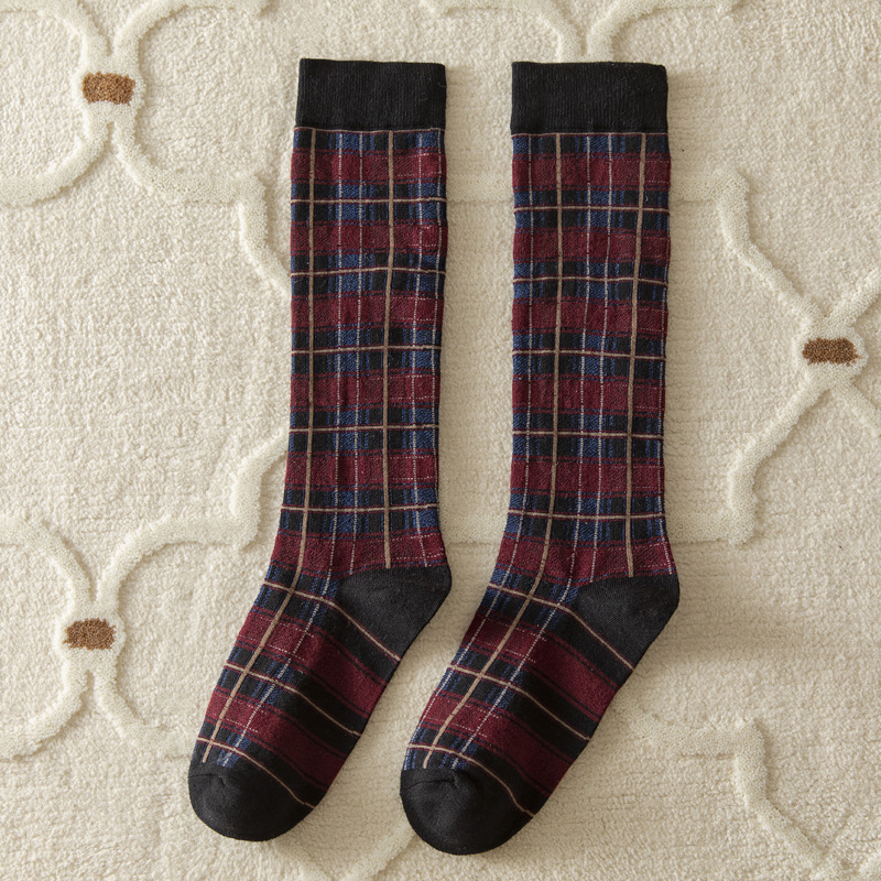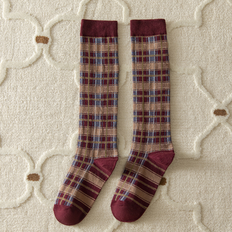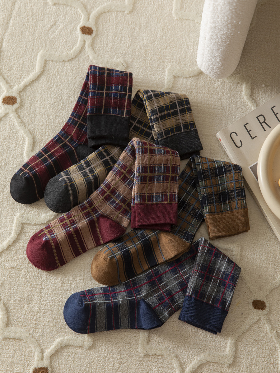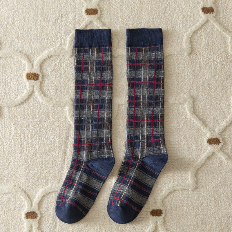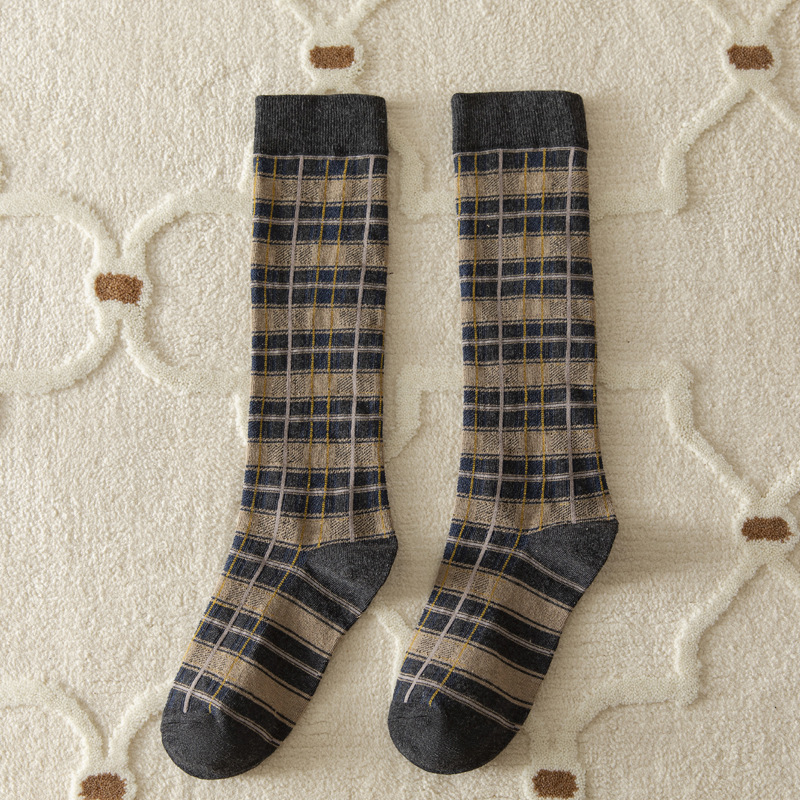 가을과 겨울 일본과 한국 스타일 레트로 얕은 양말 영국 아카데미 스타일 격자 무늬 슬리밍 다목적 높은 양말 면 여성 양말 배치