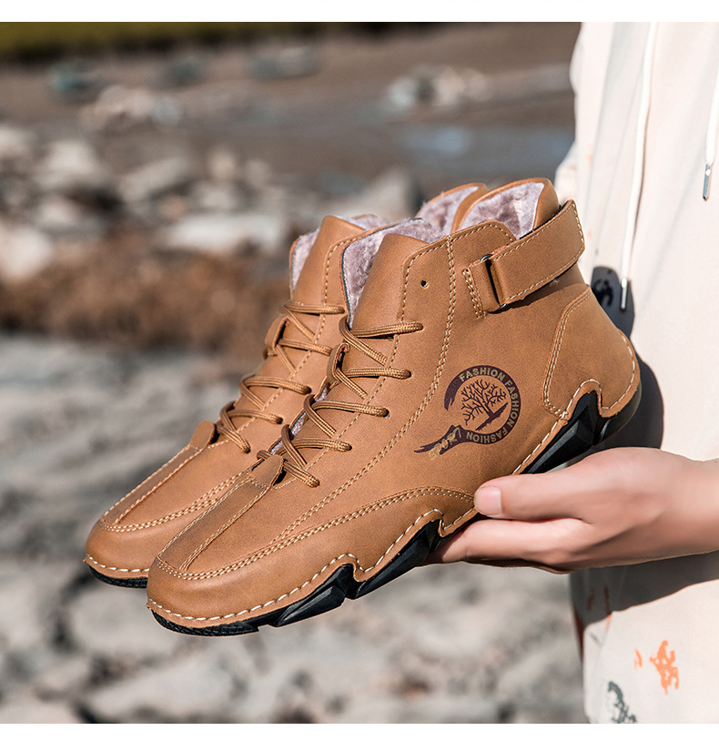 가을과 겨울 따뜻한 남성 캐주얼 신발 짧은 부츠 독립 스탠드 야외 레저 남성 및 여성 부츠 기모 플러스 사이즈 남성 신발 마틴 부츠
