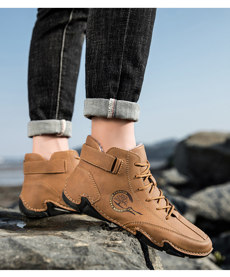 가을과 겨울 따뜻한 남성 캐주얼 신발 짧은 부츠 독립 스탠드 야외 레저 남성 및 여성 부츠 기모 플러스 사이즈 남성 신발 마틴 부츠스토어 가기