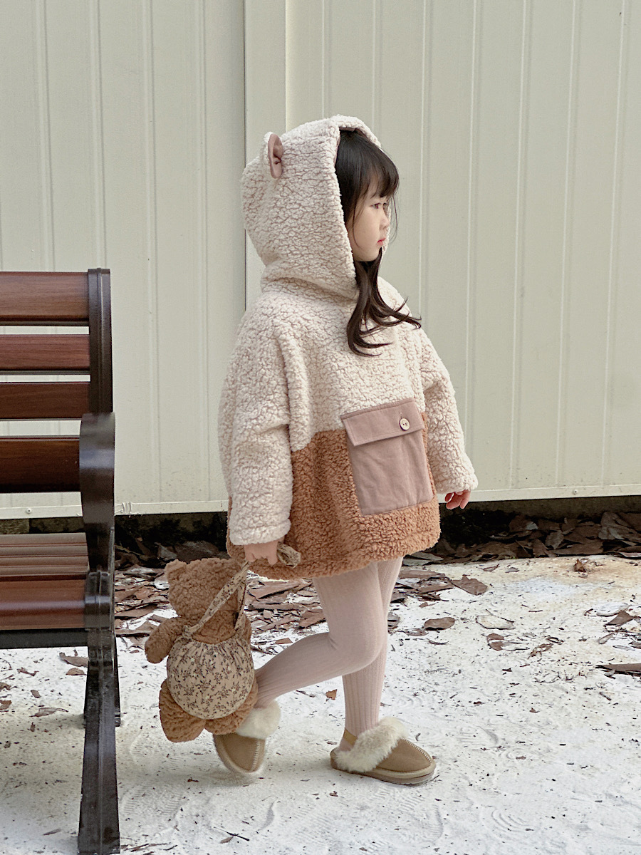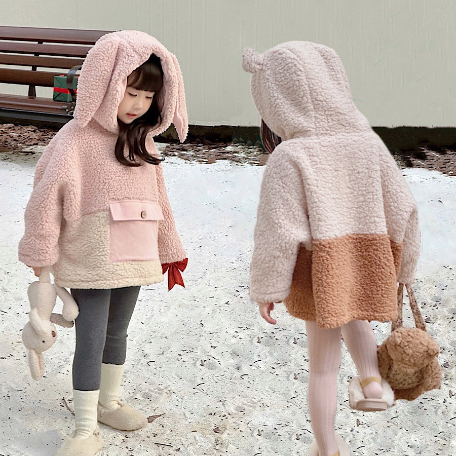재고 소녀의 겨울 양고기 모피 코트 귀여운 토끼 귀 후드 스웨터 기모 두꺼운 모피 탑스토어 가기