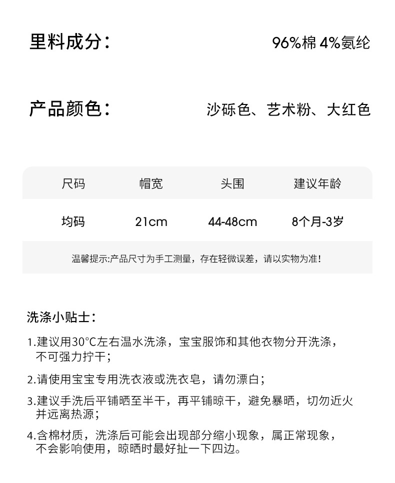 • 6 개월-3 세 (캡 둘레 44-48cm)
