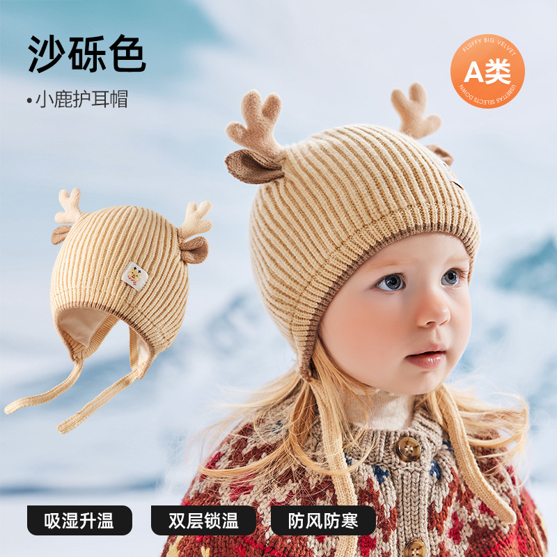베티스 아기 모자 가을, 겨울 2025 새로운 유아 소녀 아기 양모 모자 어린이 귀 보호 니트 모자