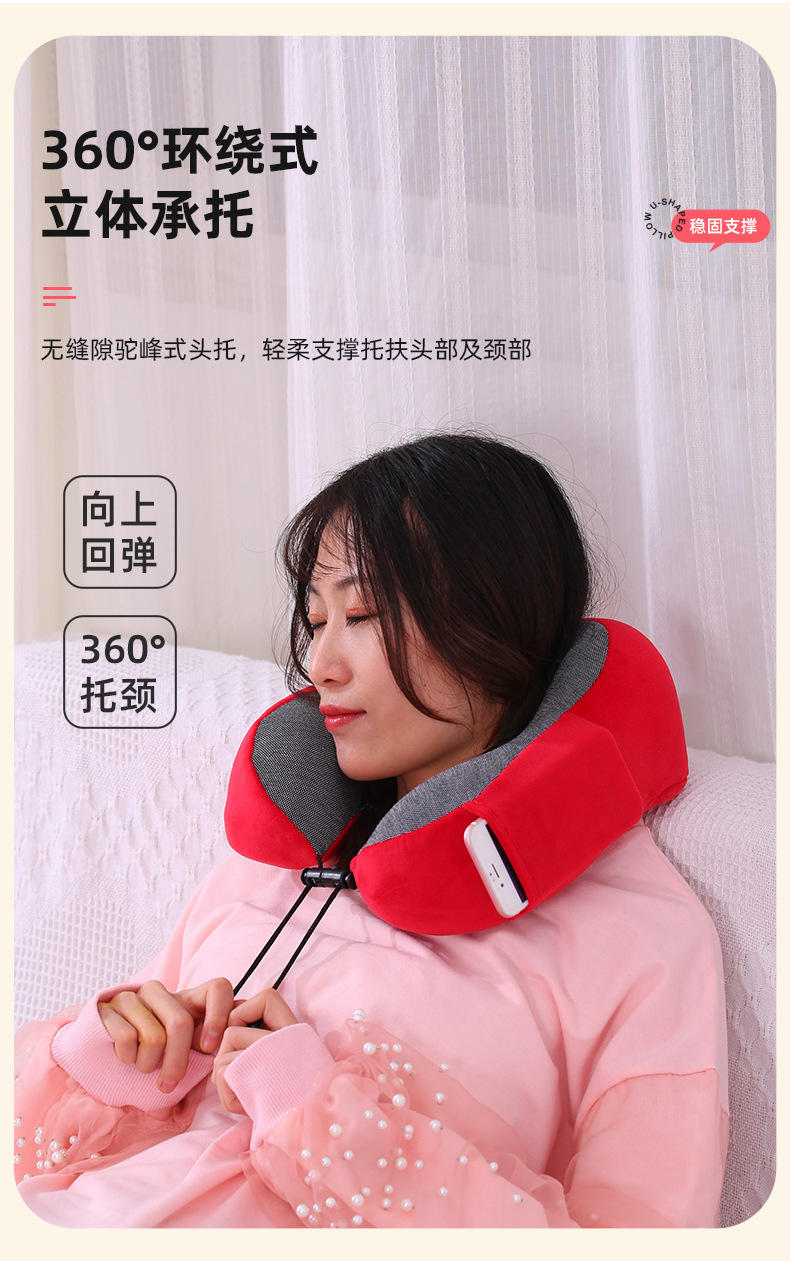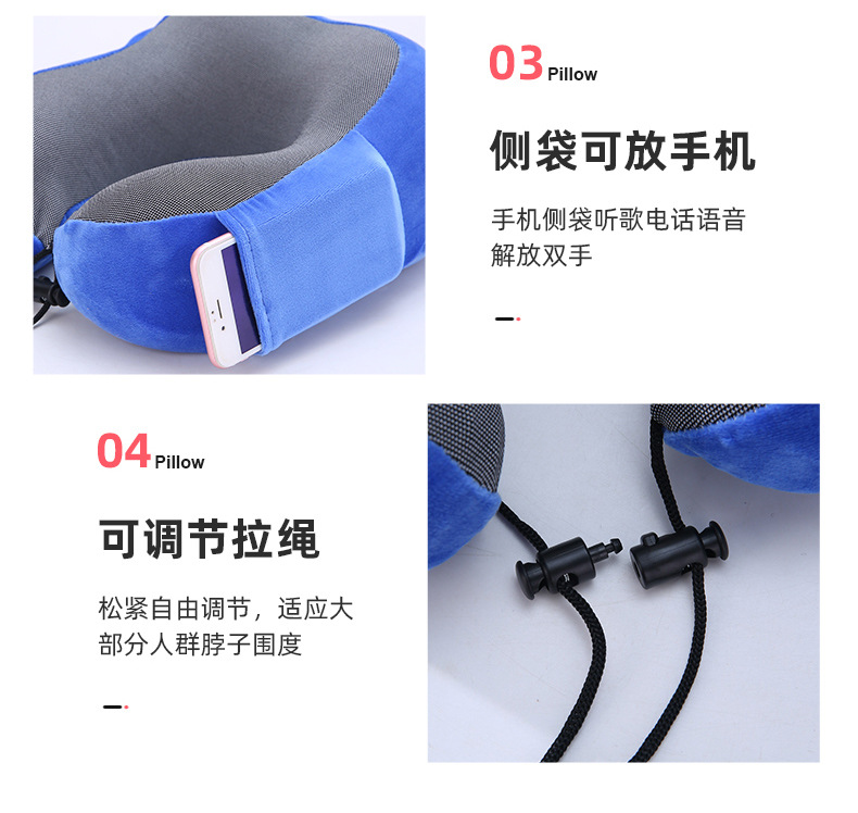 메모리폼 U자형 베개, 수납 가능한 U자형 목베개, 여행용 비행기 여행 베개, 낮잠용 경추 목 보호 베개
