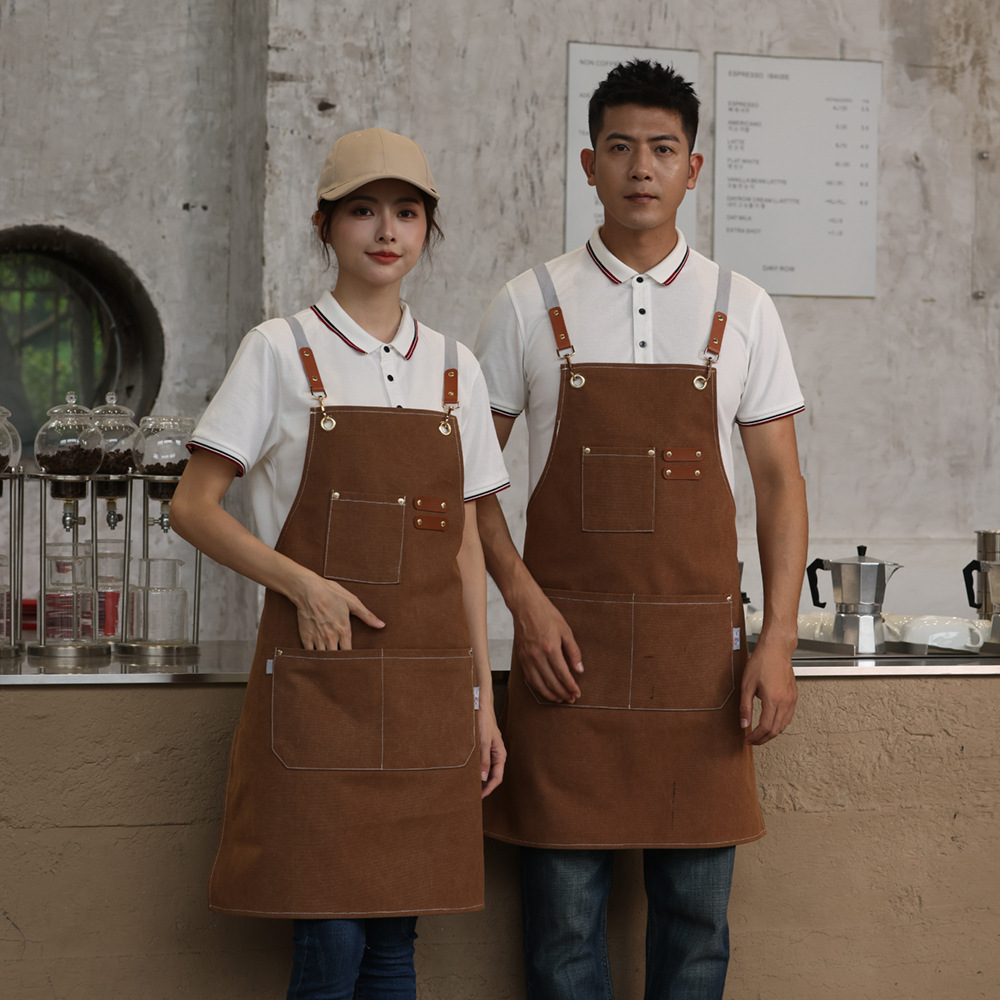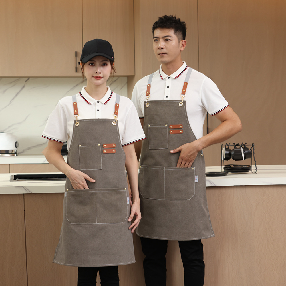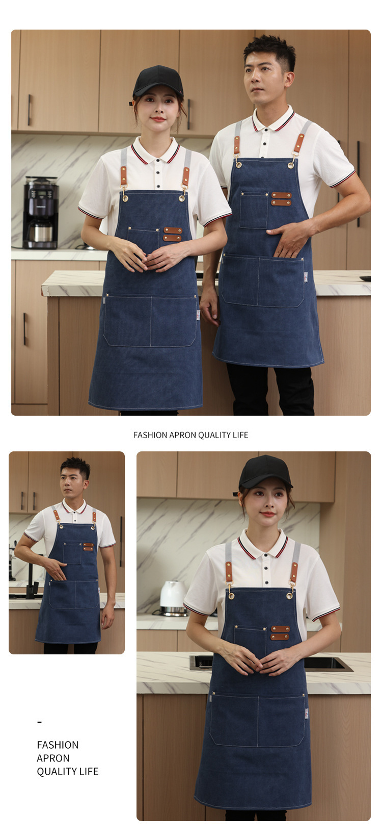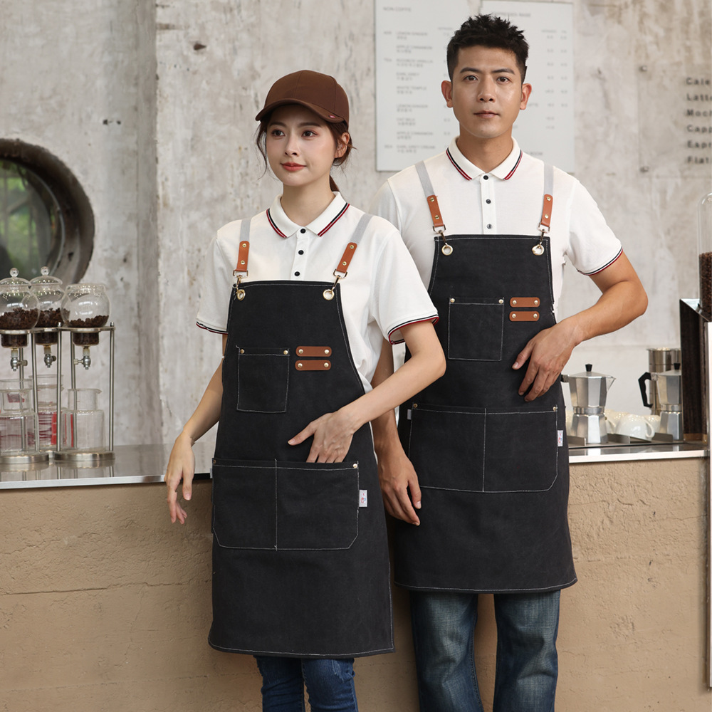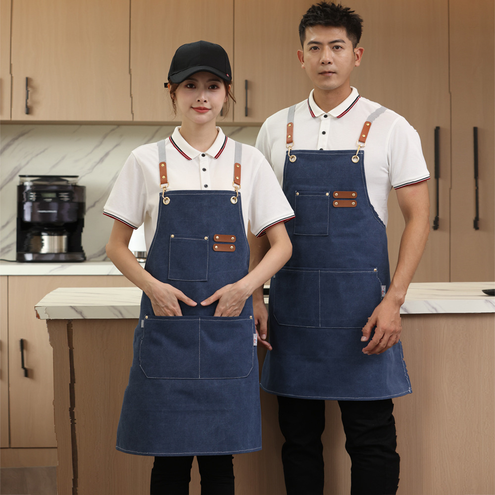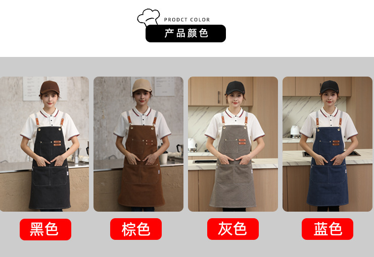 두꺼운 캔버스 앞치마 이발 네일 아트 케이터링 커피 밀크 티 샵 웨이터 웨이터 주방 작업복 여성