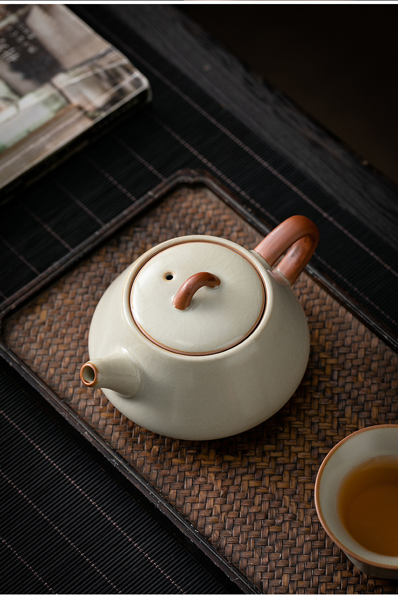 베이지 루 가마 주전자 단일 가정용 세라믹 스몰 사이즈 돌 냄비 오프닝은 루 도자기 쿵푸 차 세트 차 메이커를 키울 수 있습니다.