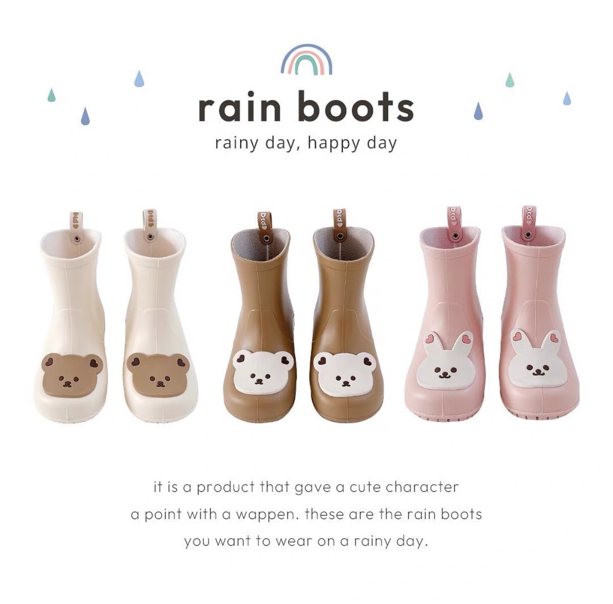 한국 Ins 어린이 비 신발 베이비 베어 미끄럼 비 장화 어린이 물 신발 방수 경량 소년 소녀 고무 신발
