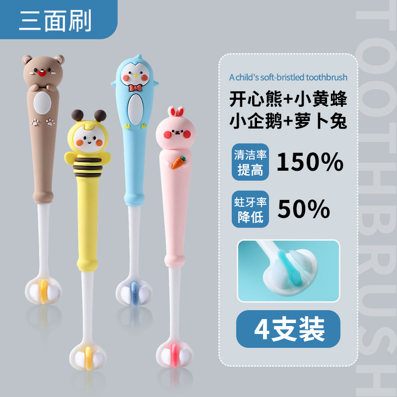 만화 3 면 브러시 창조적 인 칫솔 어린이 아기 특수 도매 3-10 세 구강 청소 작은 머리 부드러운 칫솔