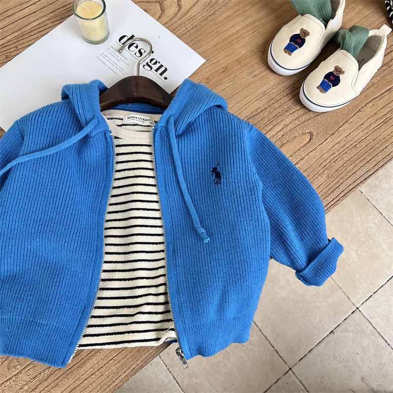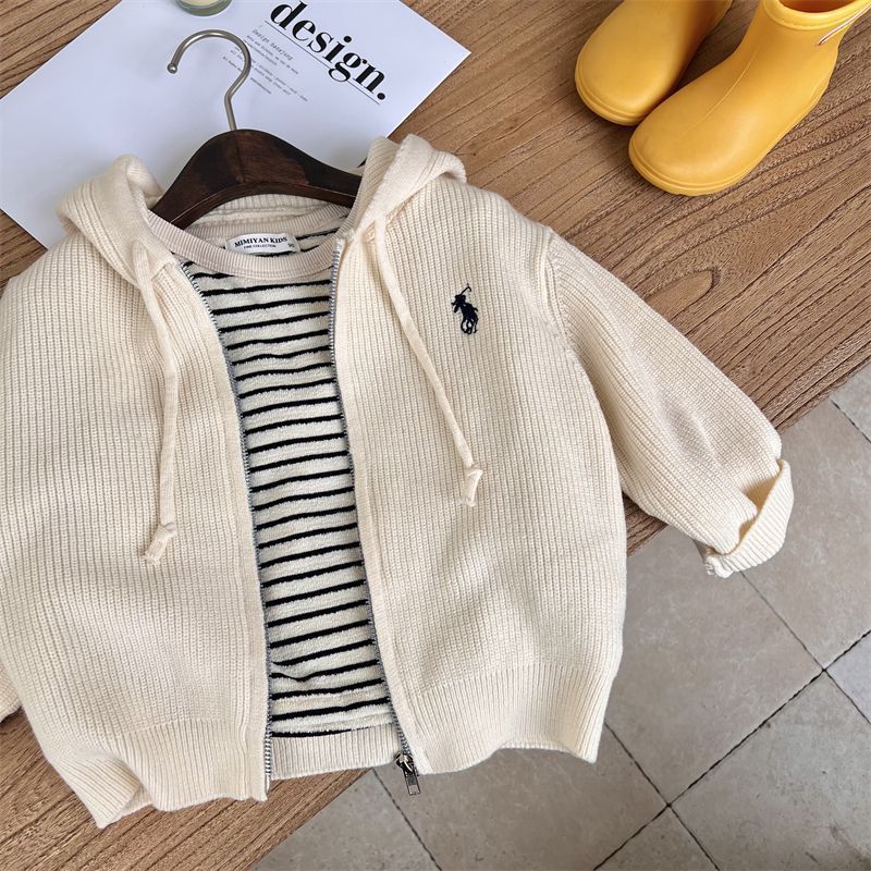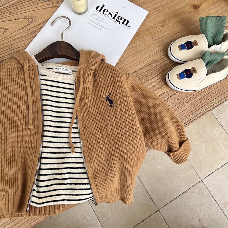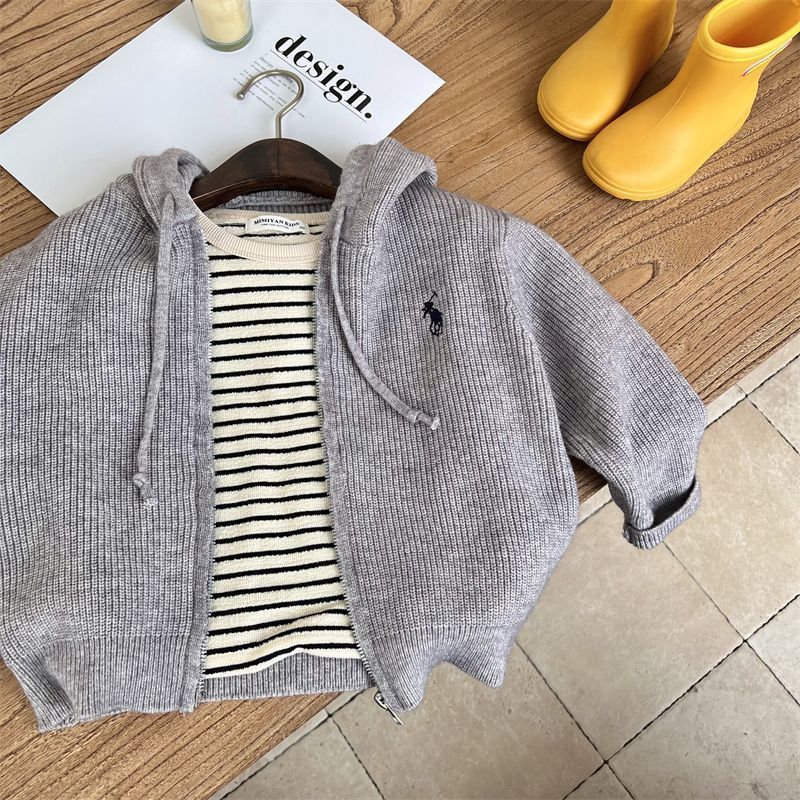 [재고 있음] 아동용 스웨터 재킷 소년 봄, 가을 스타일 아기 소녀 유행 브랜드 아동복 아동용 단색 후드 니트스토어 가기