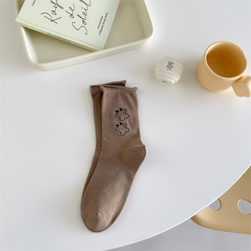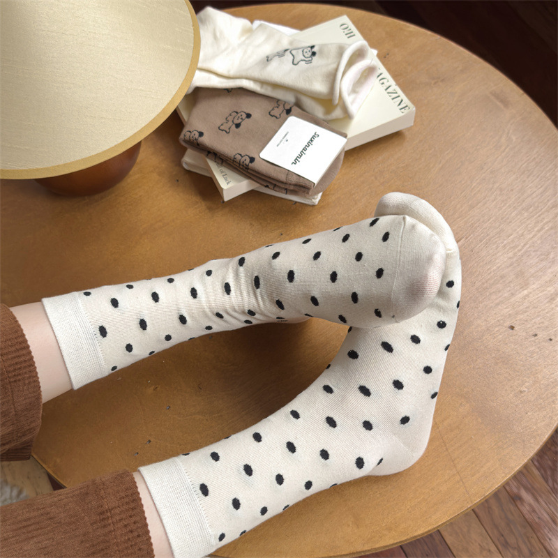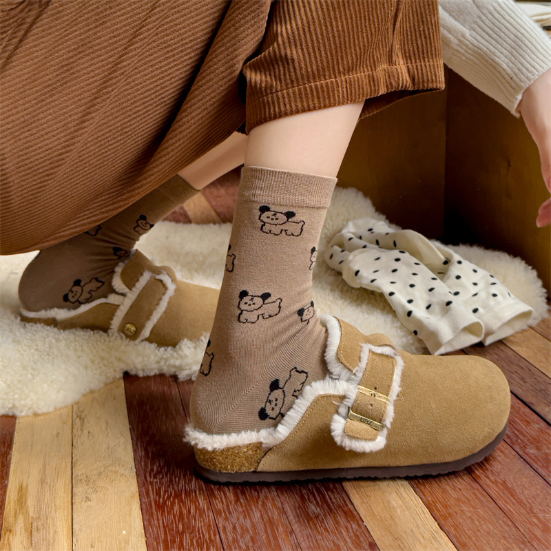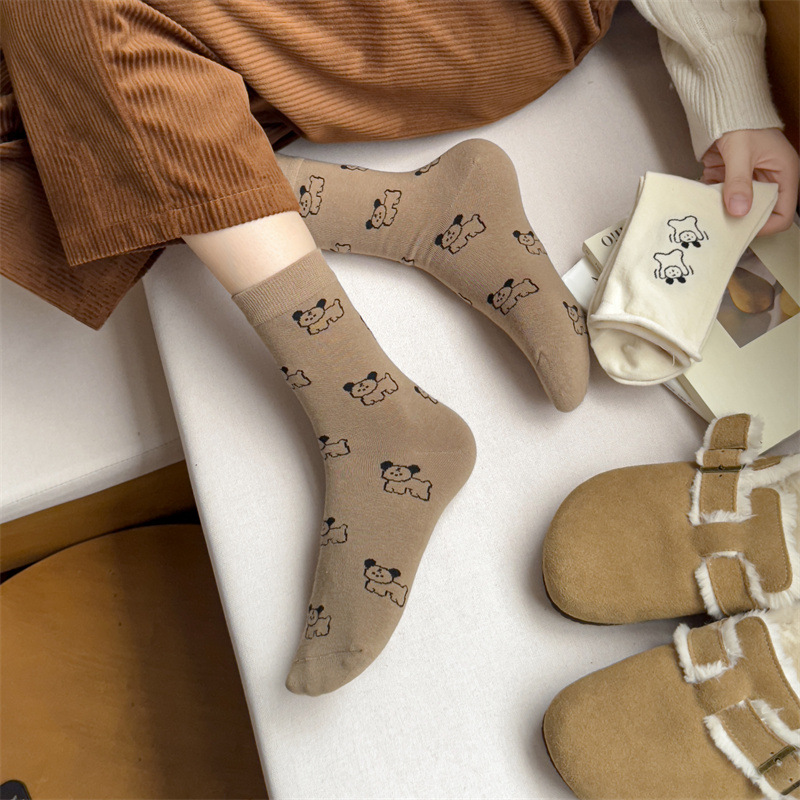 가을 겨울 여성을위한 중간 송아지 길이 양말 새로운 Maillard 컬러 스타킹 귀여운 만화 개 신 트렌디 한 학생 양말스토어 가기
