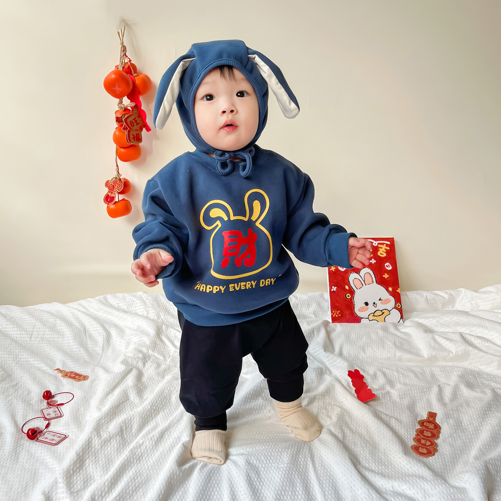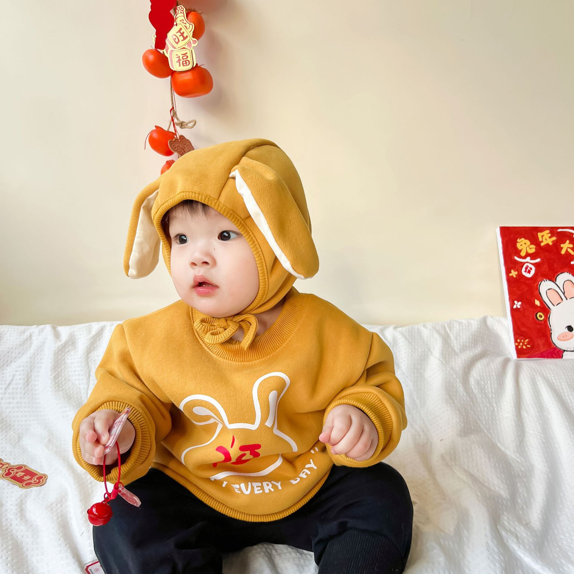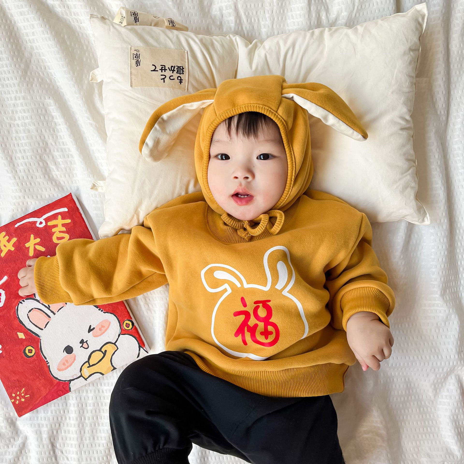 25 가을, 겨울 신년 티셔츠 ins 스타일 국가 동향 아동상의 중소 어린이 긴팔 새해 인사 두꺼운상의스토어 가기