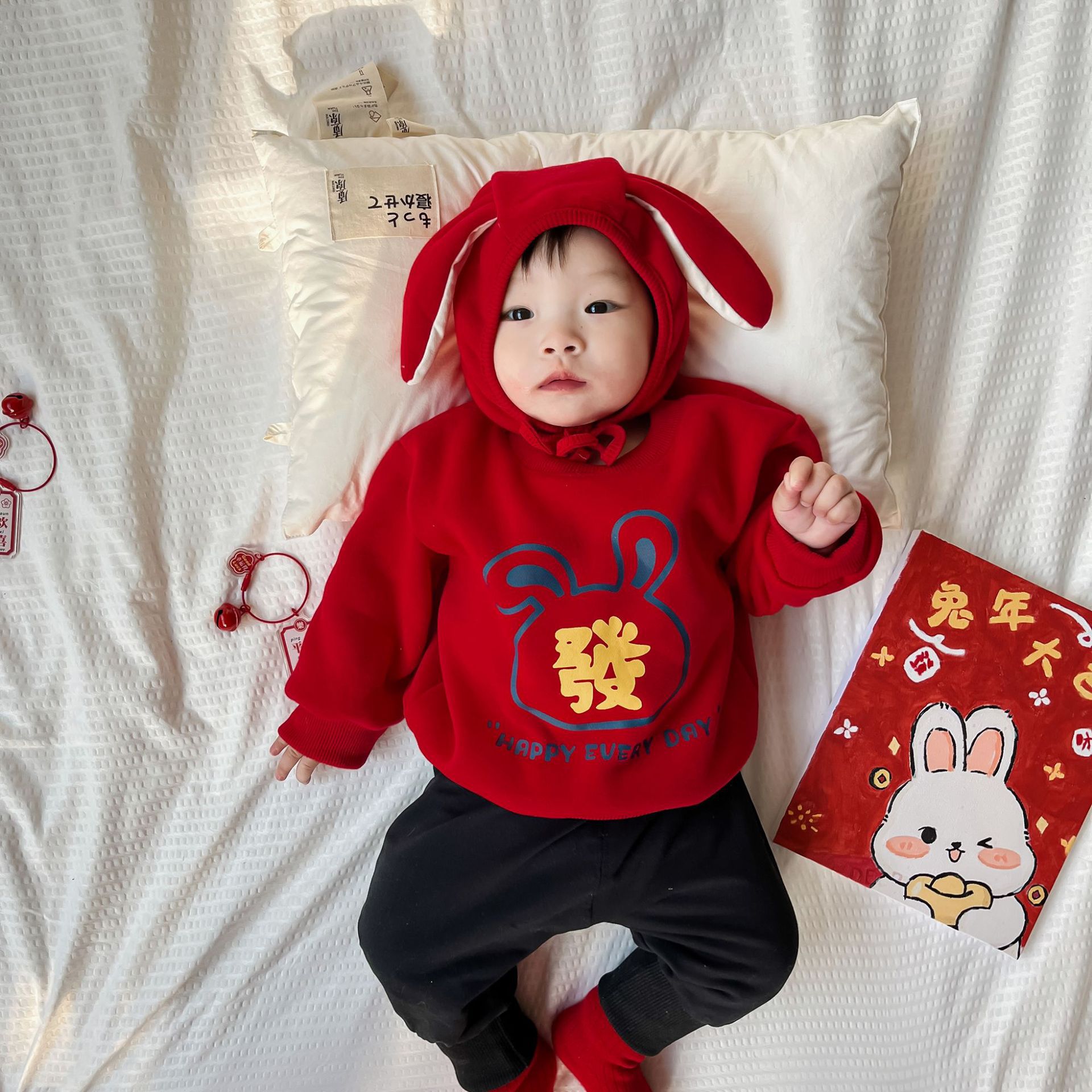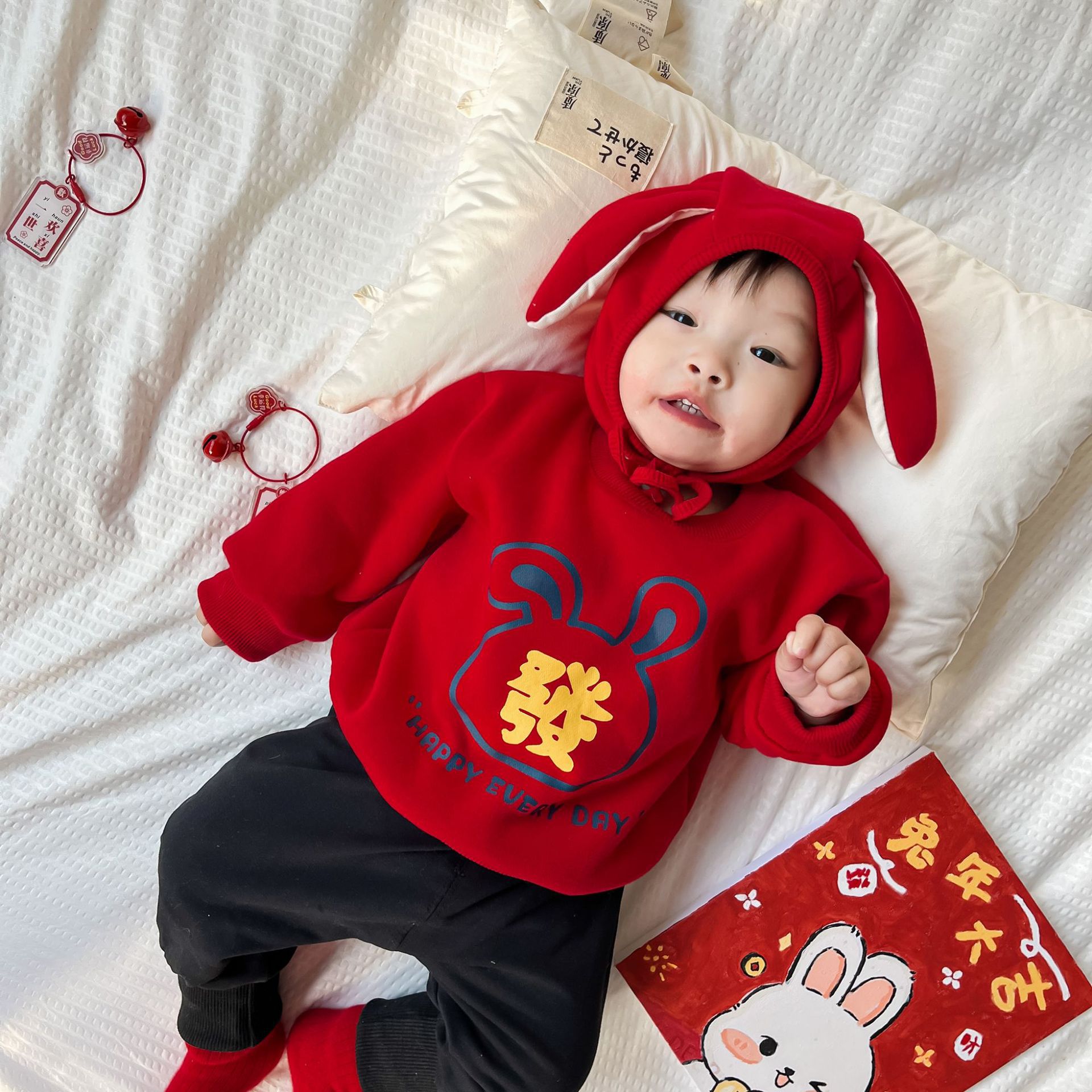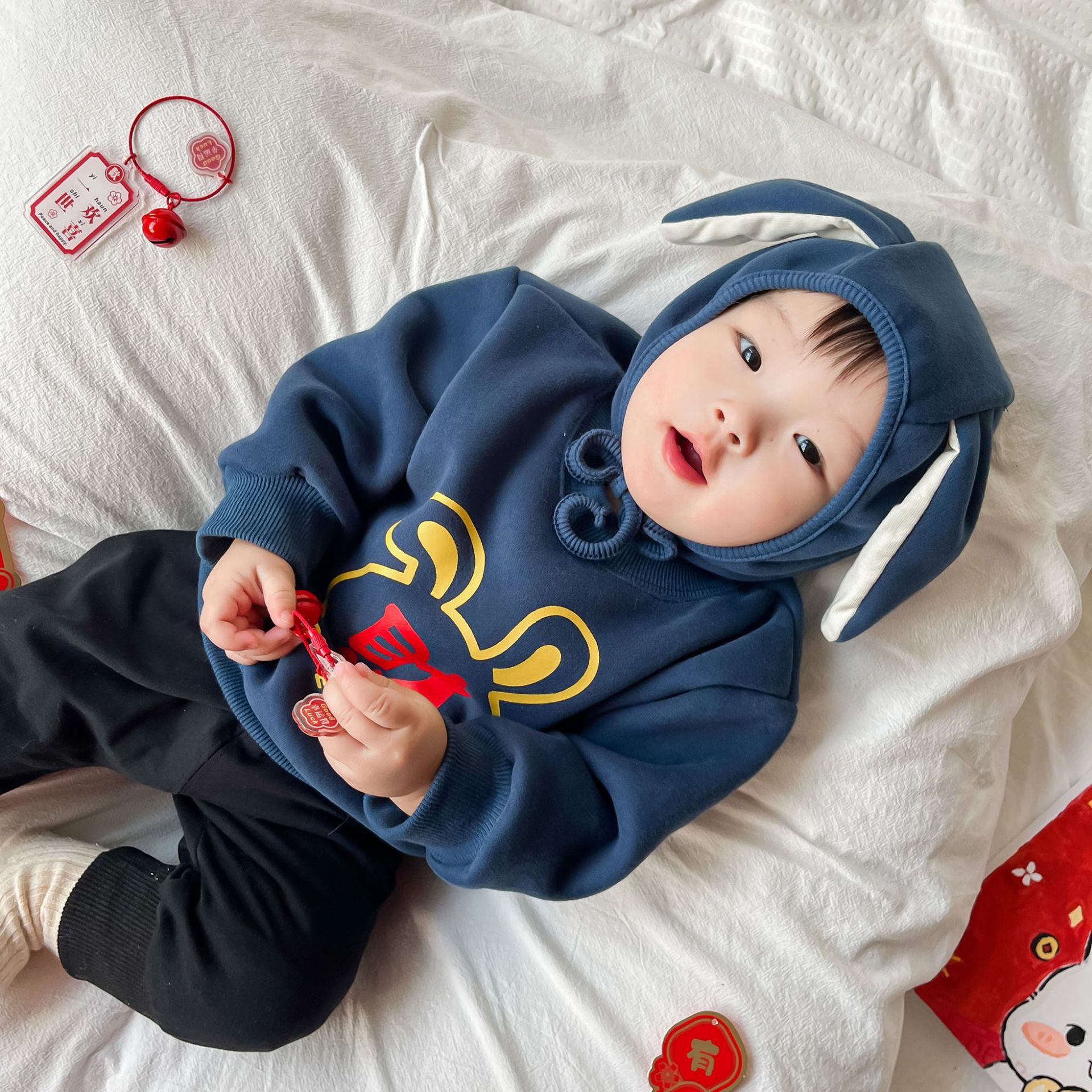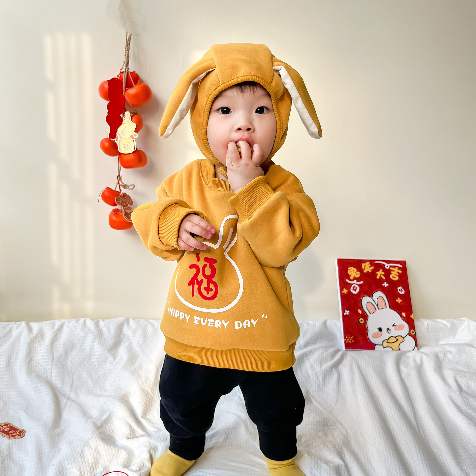 25 가을, 겨울 신년 티셔츠 ins 스타일 국가 동향 아동상의 중소 어린이 긴팔 새해 인사 두꺼운상의스토어 가기