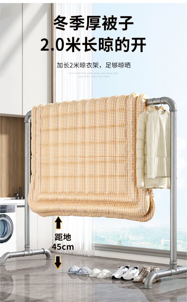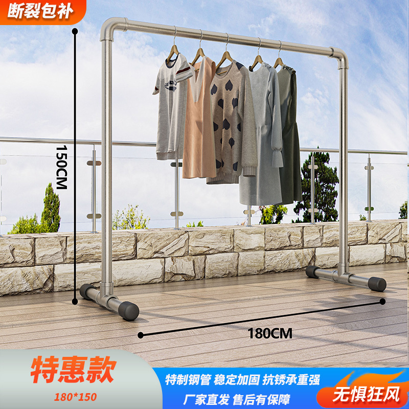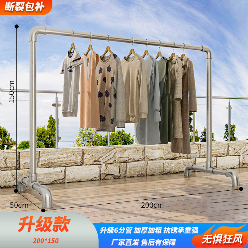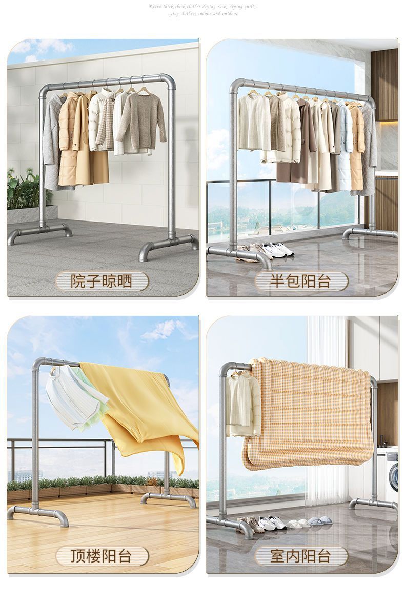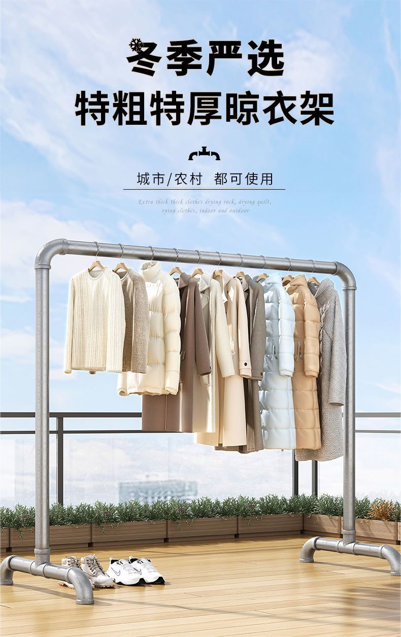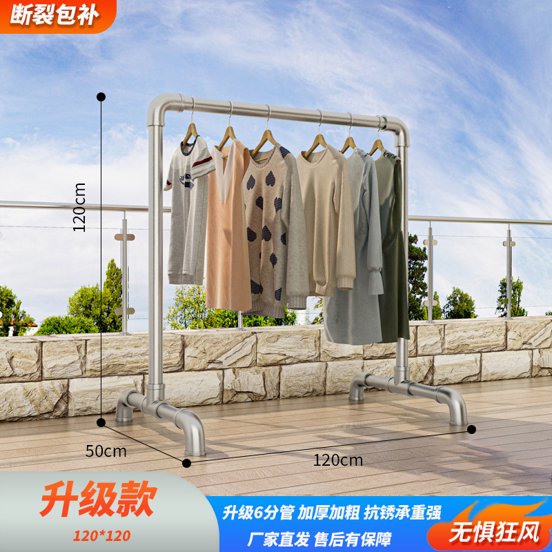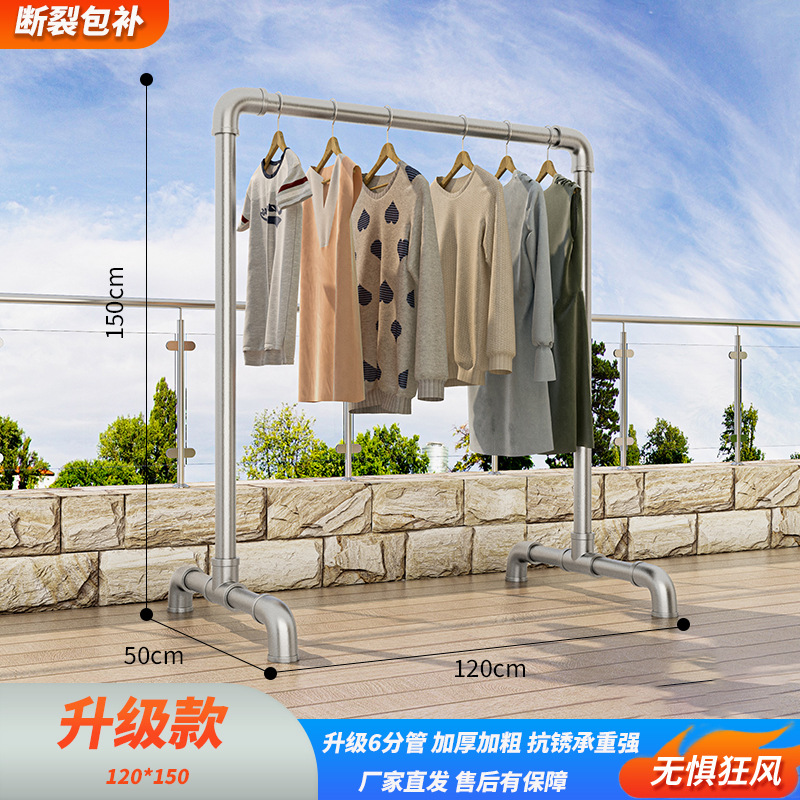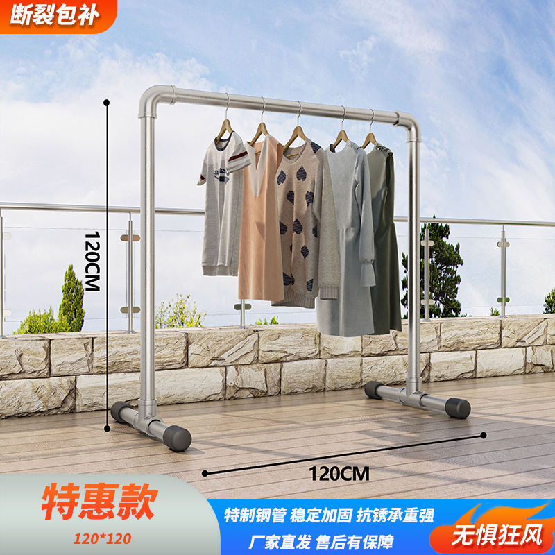 바닥 옷 옷걸이 가정용 발코니 건조 옷걸이 굵은 파이프 직경 침실 간단한 스타일 옷 랙 싱글로드 옷 건조 랙스토어 가기