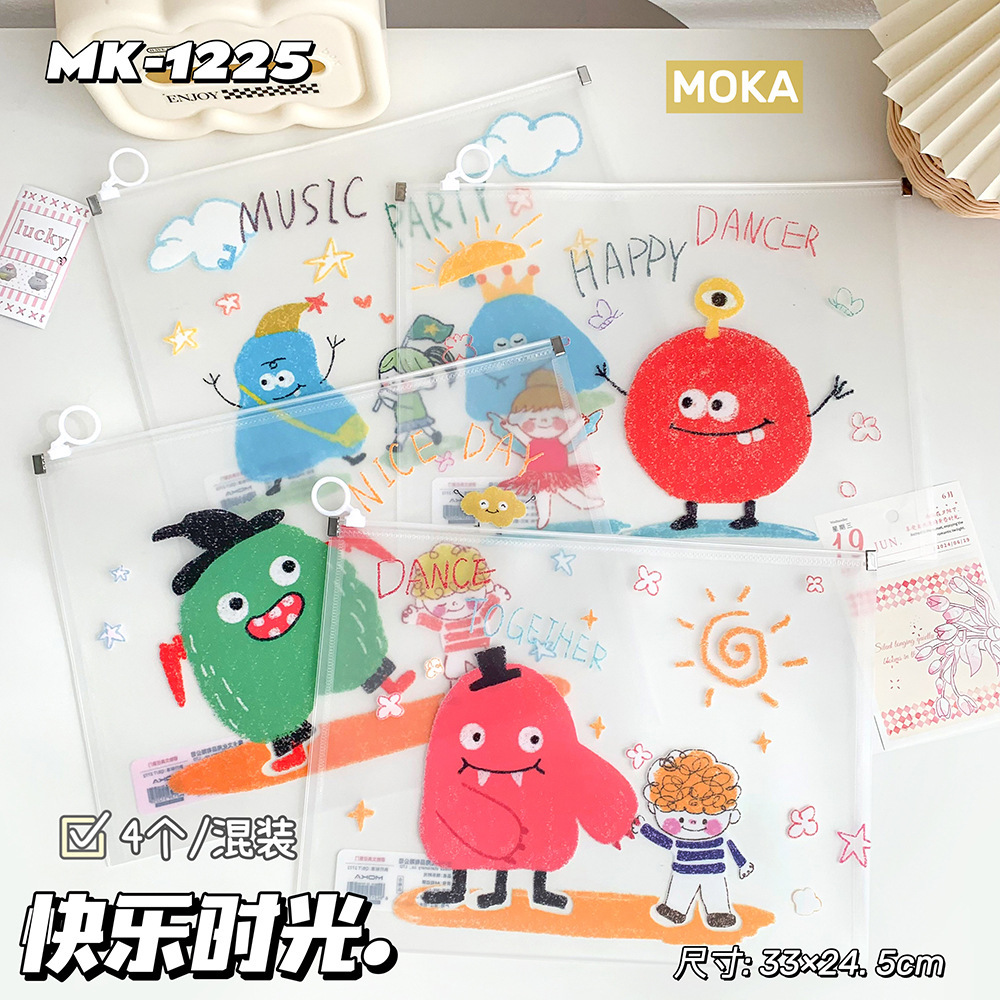 투명 A4 방수 드로스트링 가방 귀여운 만화 학생 시험 종이 보관 가방 링 가방 파일 가방 두껍게스토어 가기