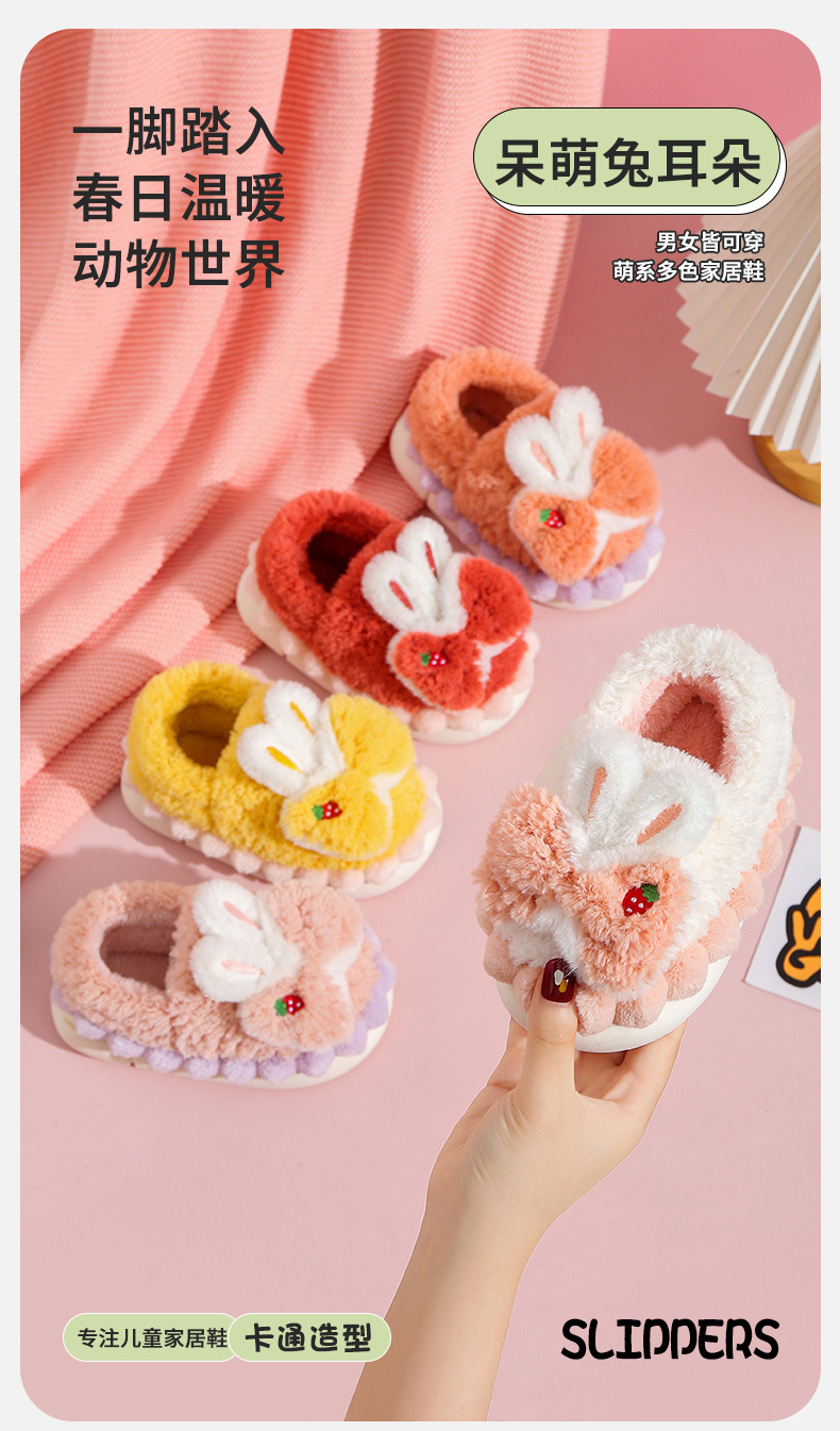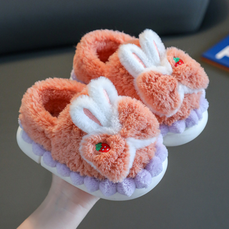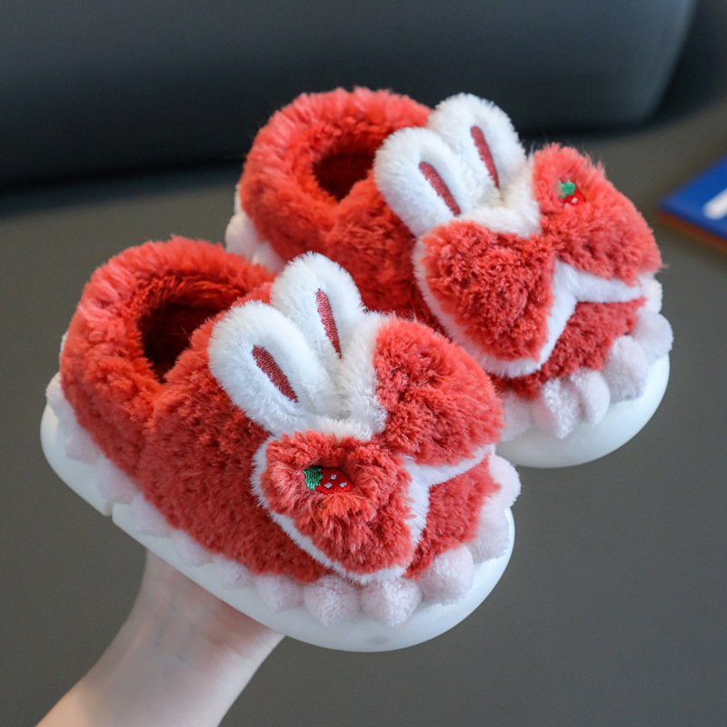 어린이 면화 슬리퍼 소녀 겨울 귀여운 소녀 가방 힐 플러시 신발 실내 가정 미끄럼 방지 아기 따뜻한 면화 신발