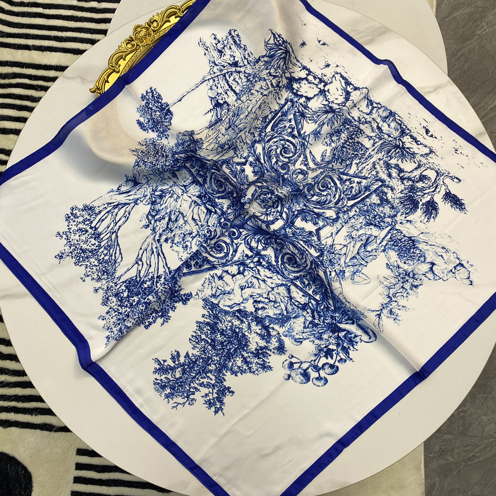 중국 스타일의 파란색과 흰색 도자기 스카프 70cm 중간 사각형 스카프 AliExpress 스카프 야외 레저 스카프 선 스크린 목도리