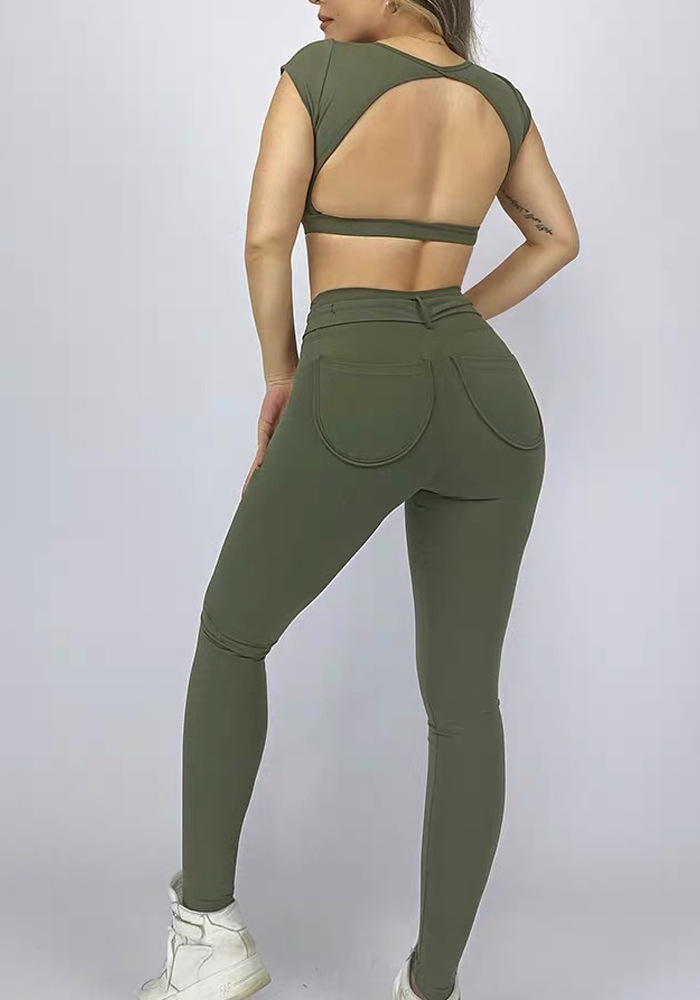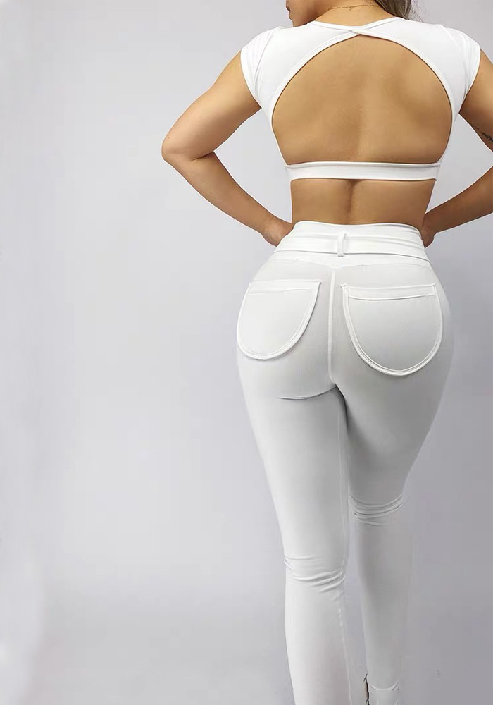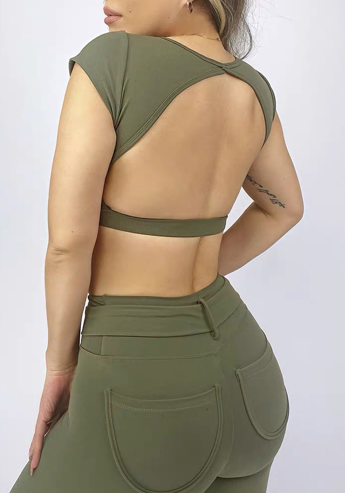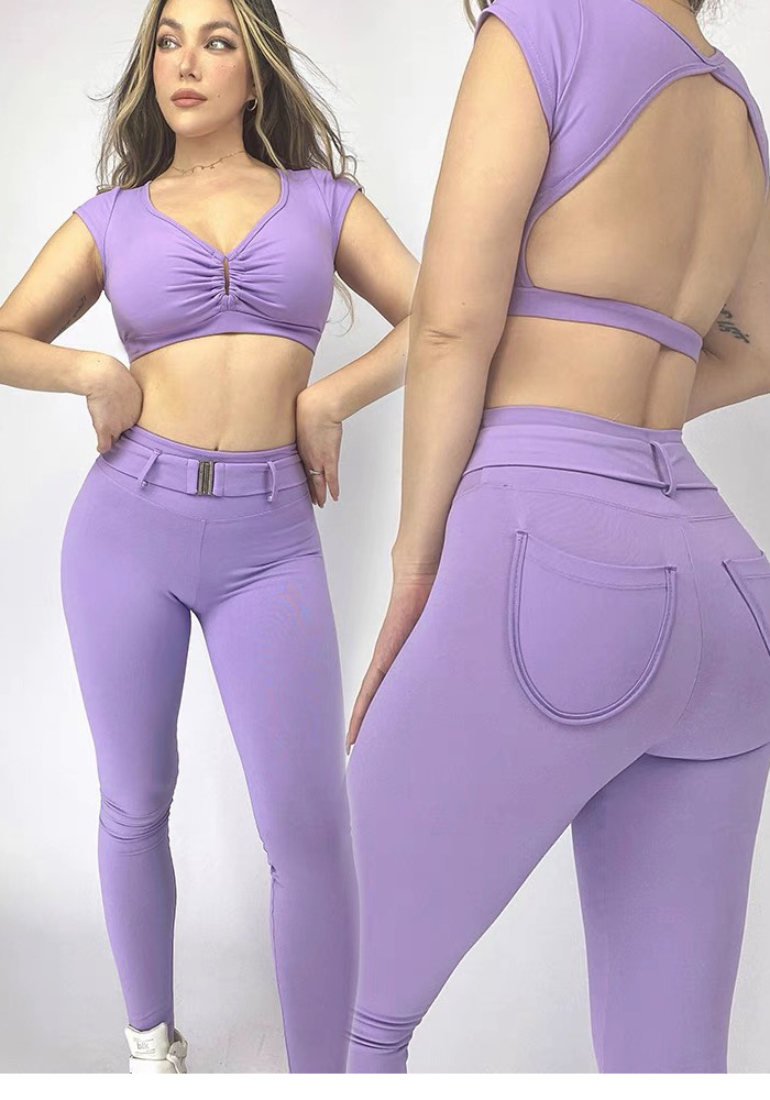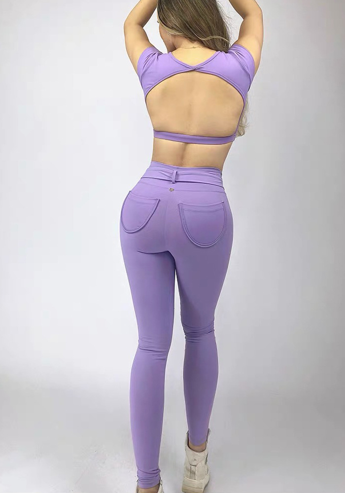 해외 무역 국경 간 요가 세트 여성 등 속이 빈 스포츠 조끼 복숭아 엉덩이 피트니스 바지 빠른 건조 러닝 바지