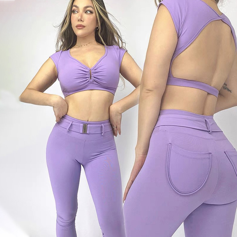 해외 무역 국경 간 요가 세트 여성 등 속이 빈 스포츠 조끼 복숭아 엉덩이 피트니스 바지 빠른 건조 러닝 바지스토어 가기