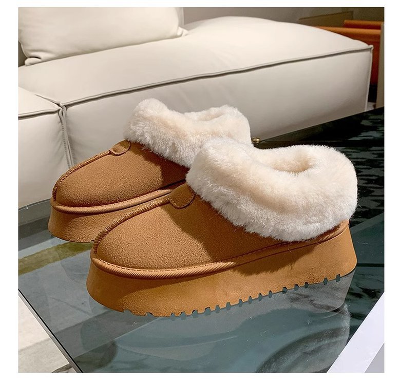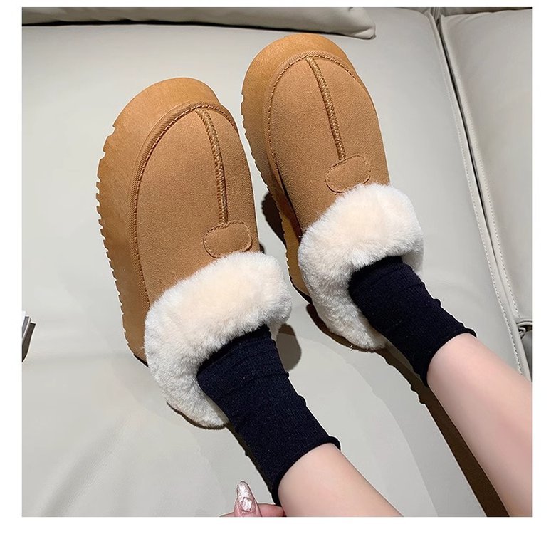 가을과 겨울 2023 여성을위한 모피 입 스노우 부츠 새로운 두꺼운 바닥 짧은 튜브 두꺼운 슬립 온 게으른 면화 신발 도매
