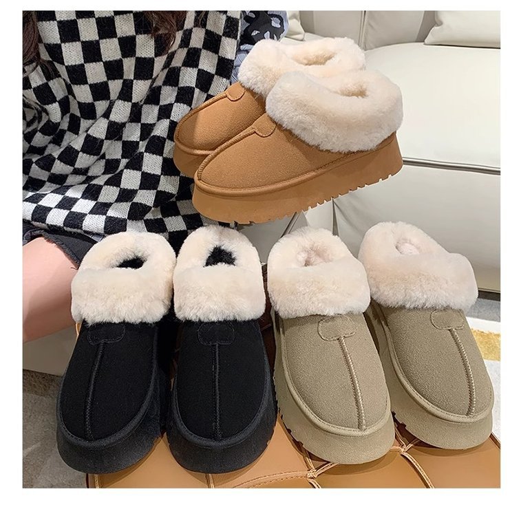 가을과 겨울 2023 여성을위한 모피 입 스노우 부츠 새로운 두꺼운 바닥 짧은 튜브 두꺼운 슬립 온 게으른 면화 신발 도매스토어 가기