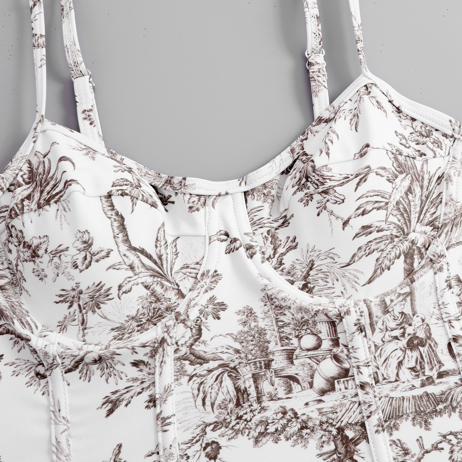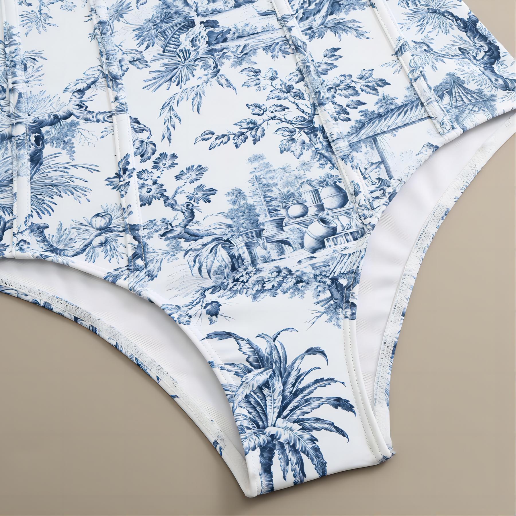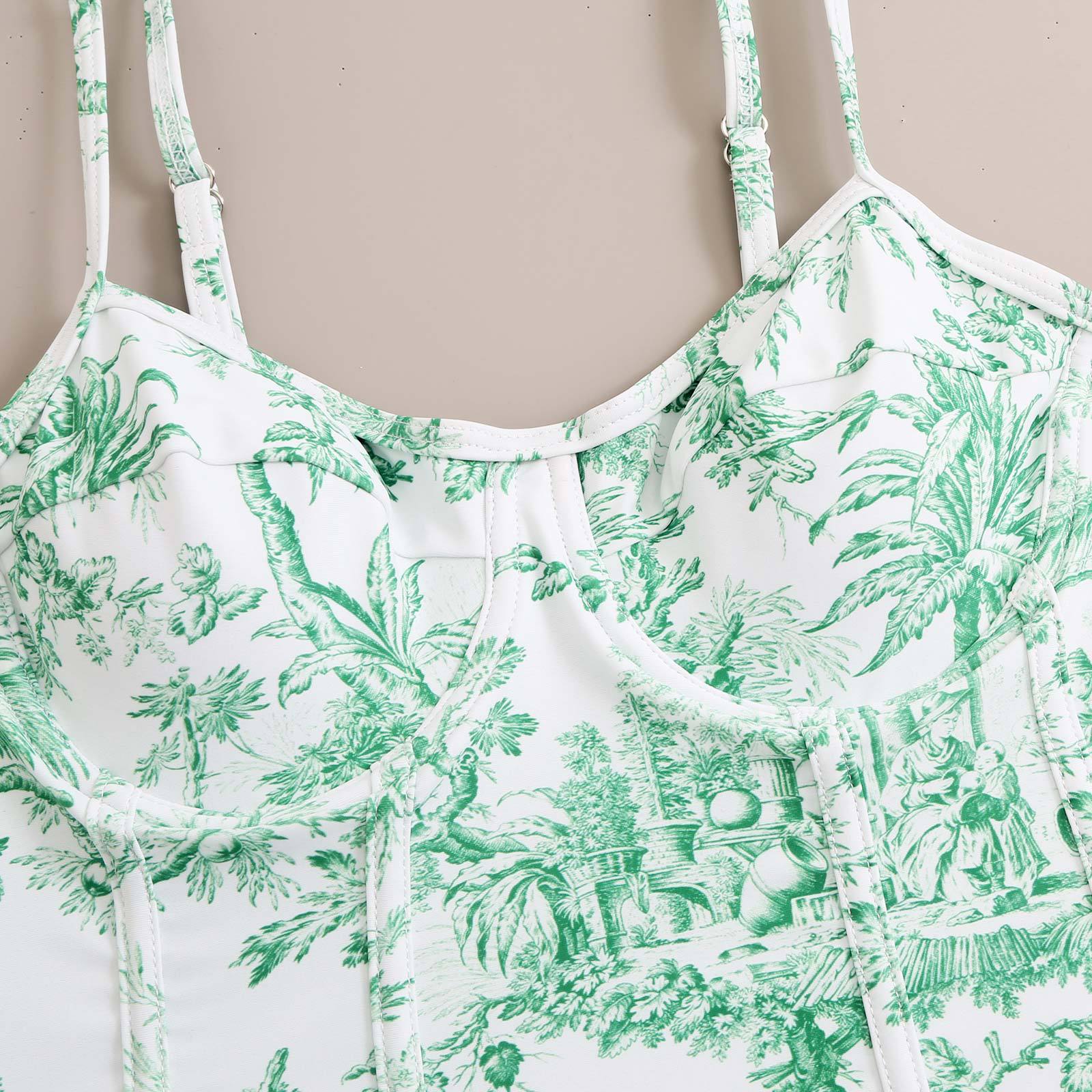 국경 복고풍 보수적 인 수영복 여성 수묵화 인쇄 점프 슈트 쉬폰 거즈 스커트 휴가 유럽과 미국 여성 수영복스토어 가기