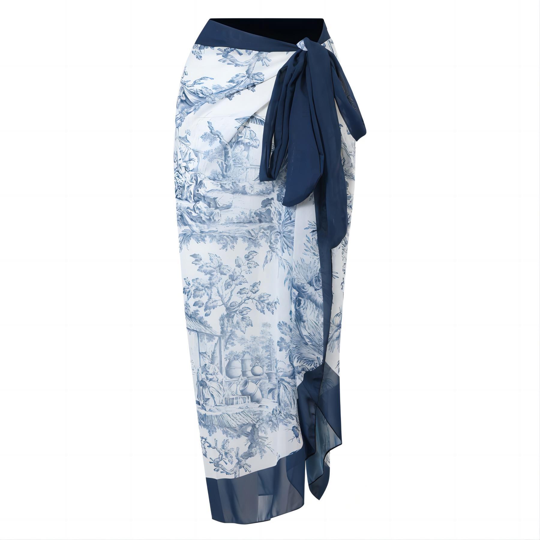 국경 복고풍 보수적 인 수영복 여성 수묵화 인쇄 점프 슈트 쉬폰 거즈 스커트 휴가 유럽과 미국 여성 수영복