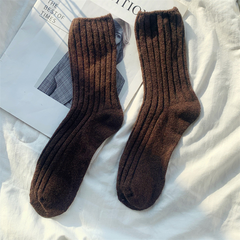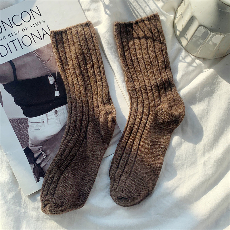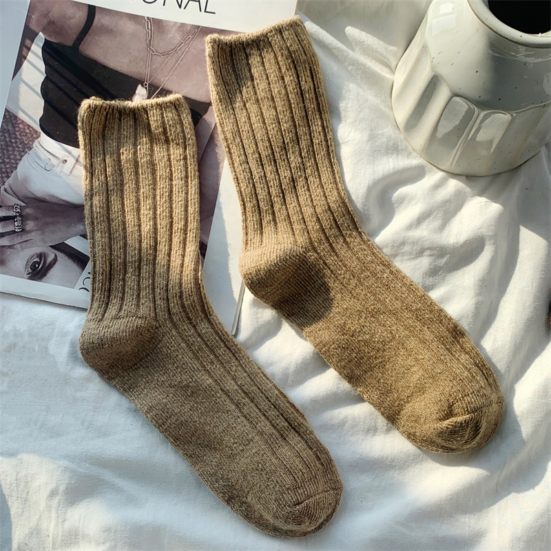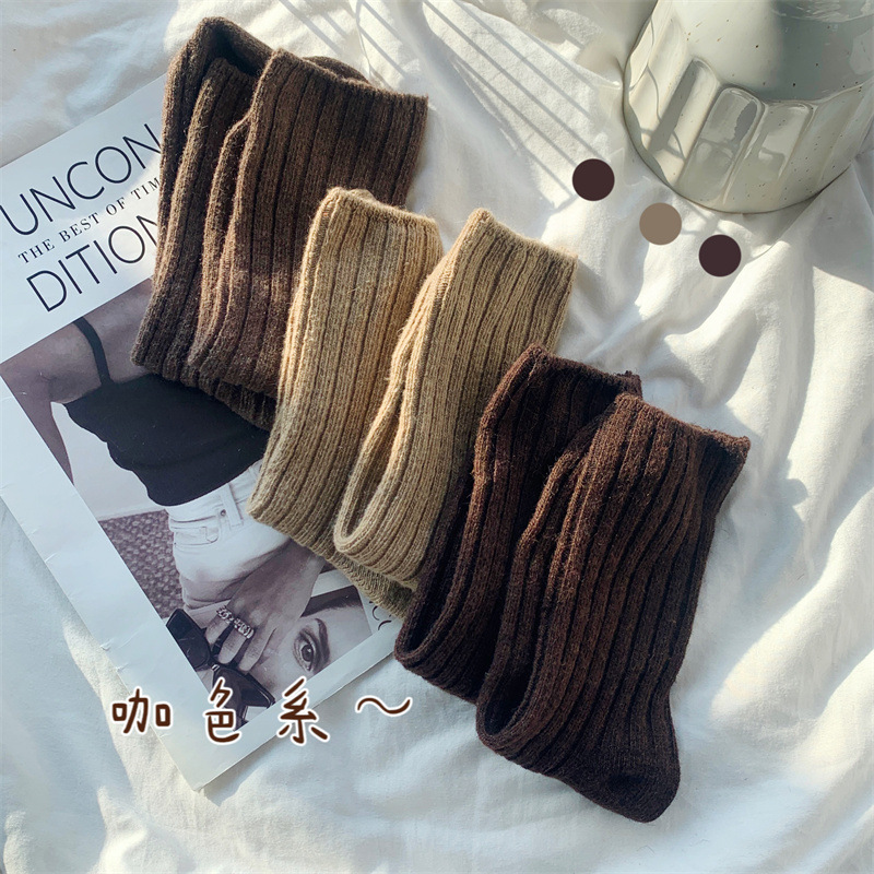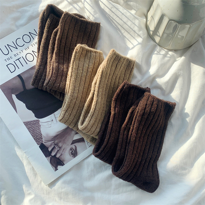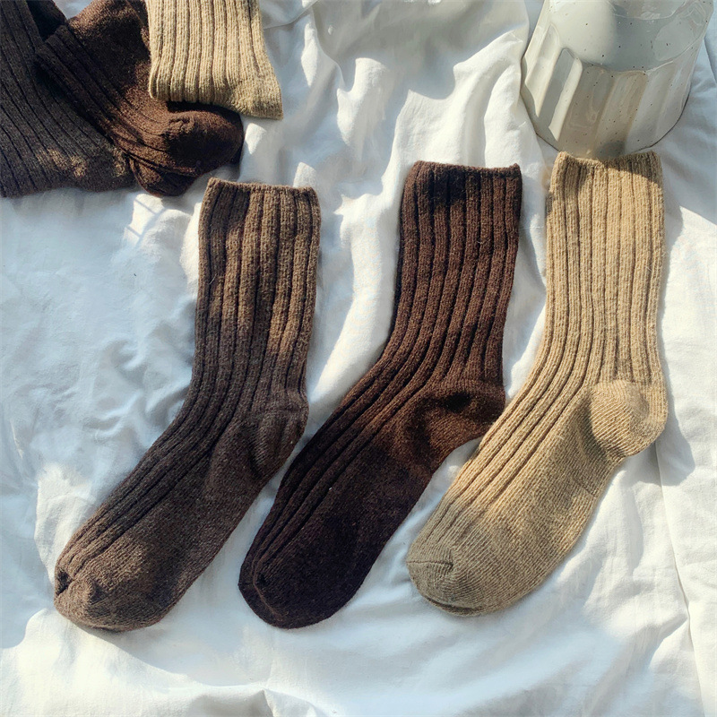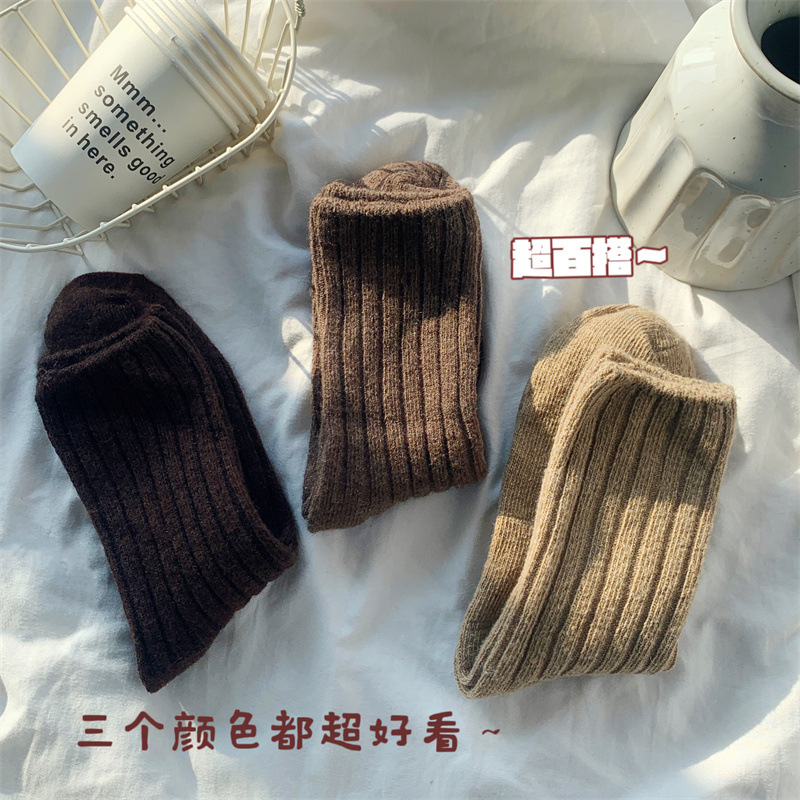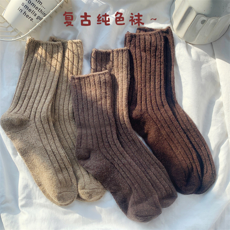 양말 여성의 가을과 겨울 빈티지 올 매치 양말 단색 두꺼운 따뜻한 코튼 양말 Ins 일본식 통기성 양말 두꺼운 양말스토어 가기