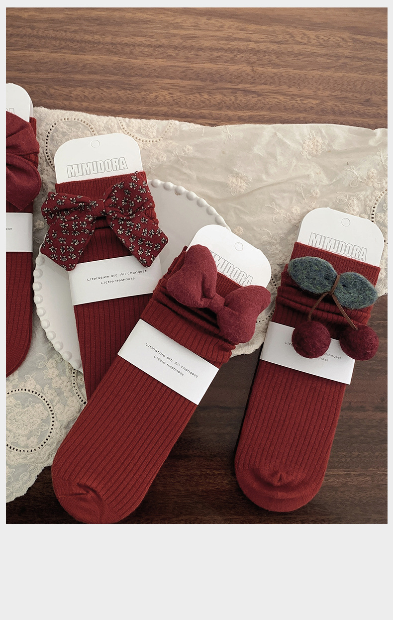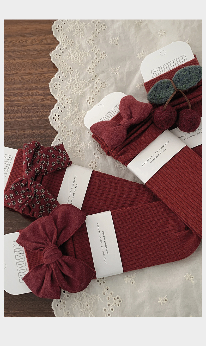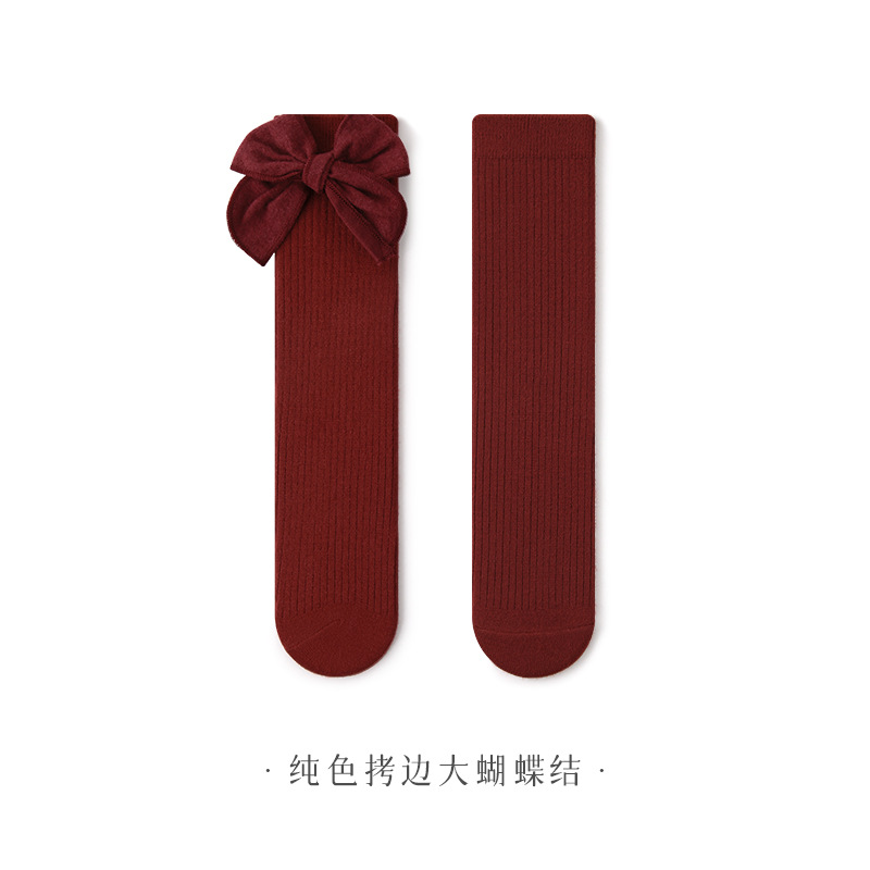 어린이 양말 가을과 겨울 새해 양말을 두껍게 한 아기 무릎 위 양말 소녀의 종아리 길이 양말 신생아 아기 스타킹 레드