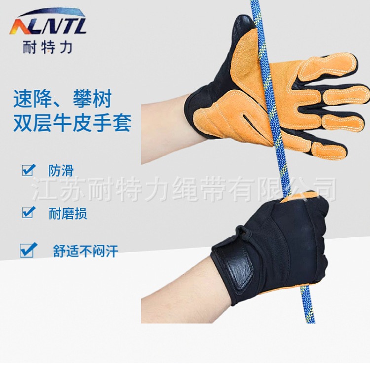 공중 작업 안티 커팅 속도 드롭 단거리 더블 레이어 소 가죽 장갑 등산 암벽 내마모성 노동 보호 미끄럼 방지 장갑