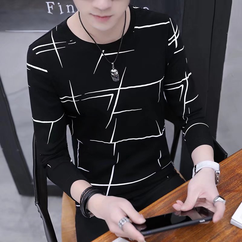 봄과 가을 남성 S 긴팔 티셔츠로 느슨한 둥근 목 한국 스타일의 트렌디 한 청소년 캐주얼 여름 봄과 가을 탑스토어 가기