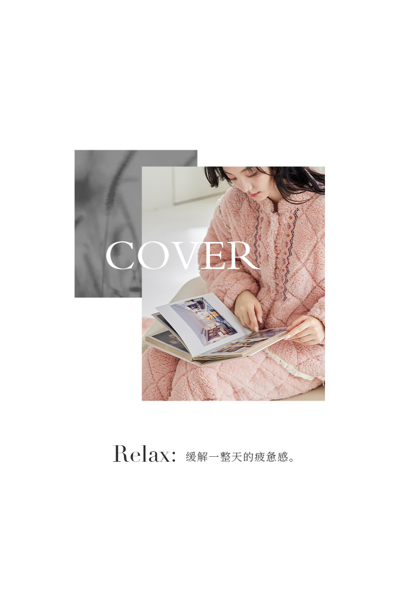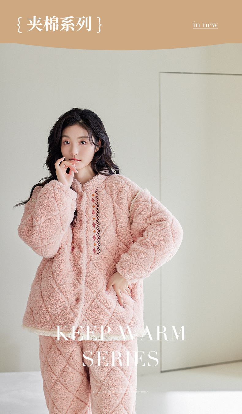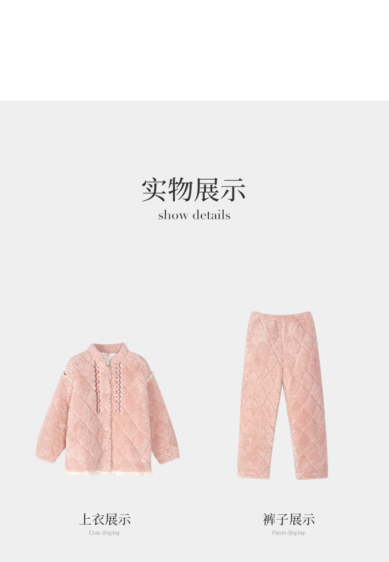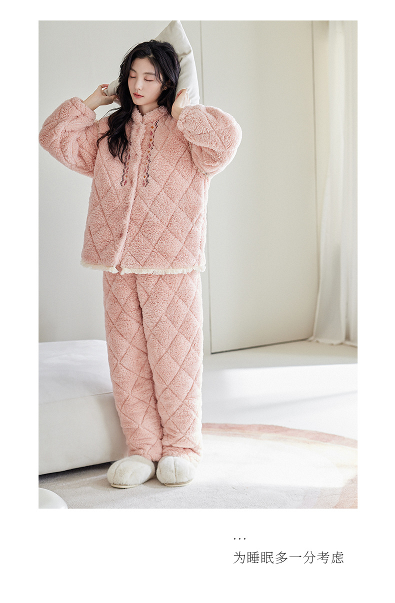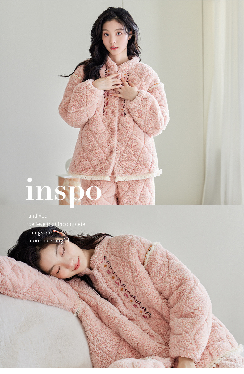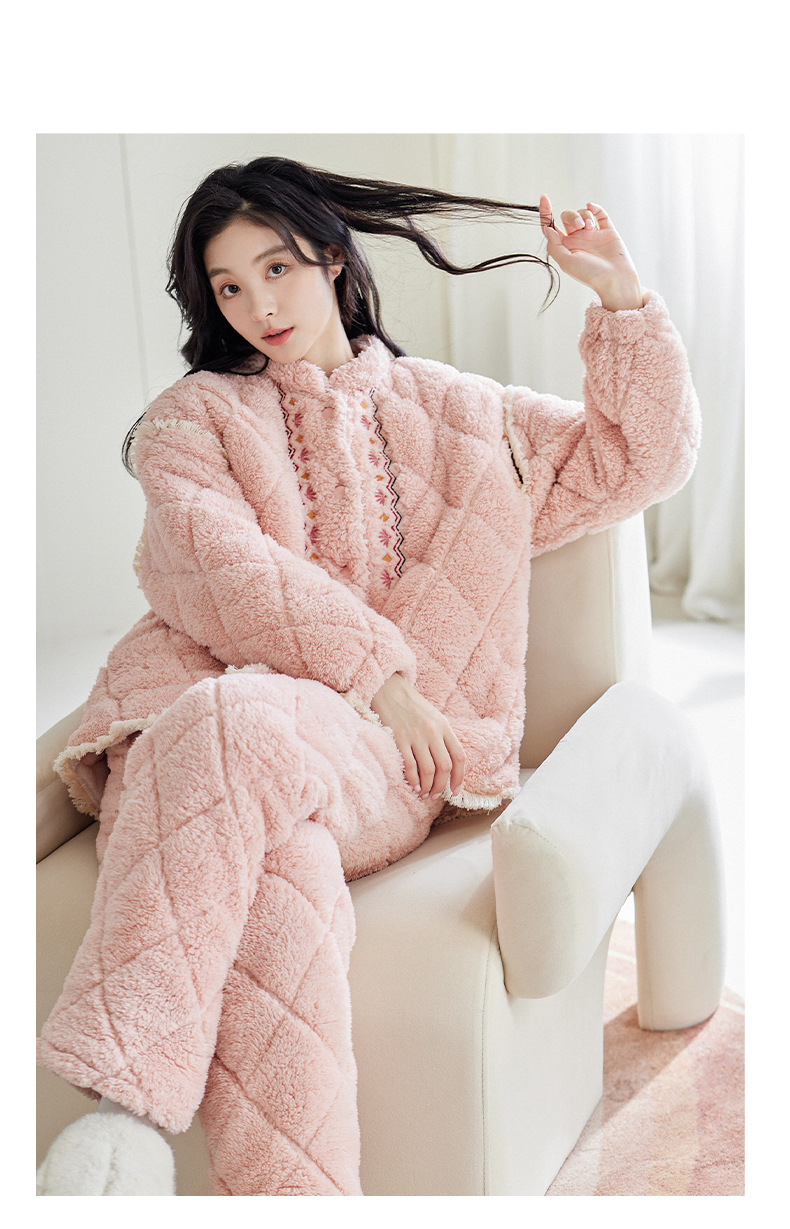 [정전기 방지] 겨울 잠옷 여성 산호 양털 3 층 퀼트 두꺼운 패션 따뜻한 기모 홈웨어 세트