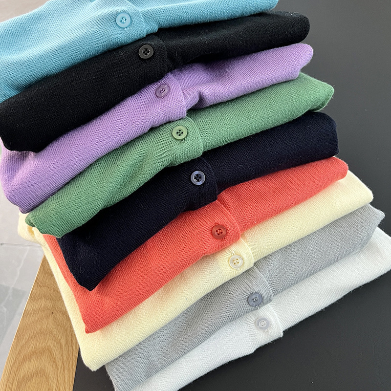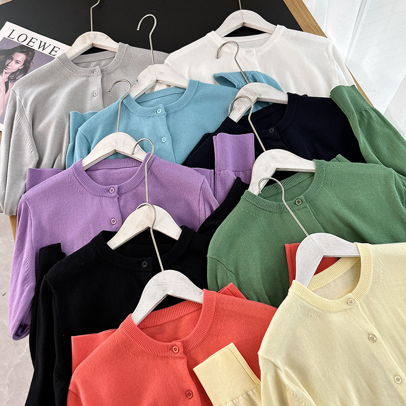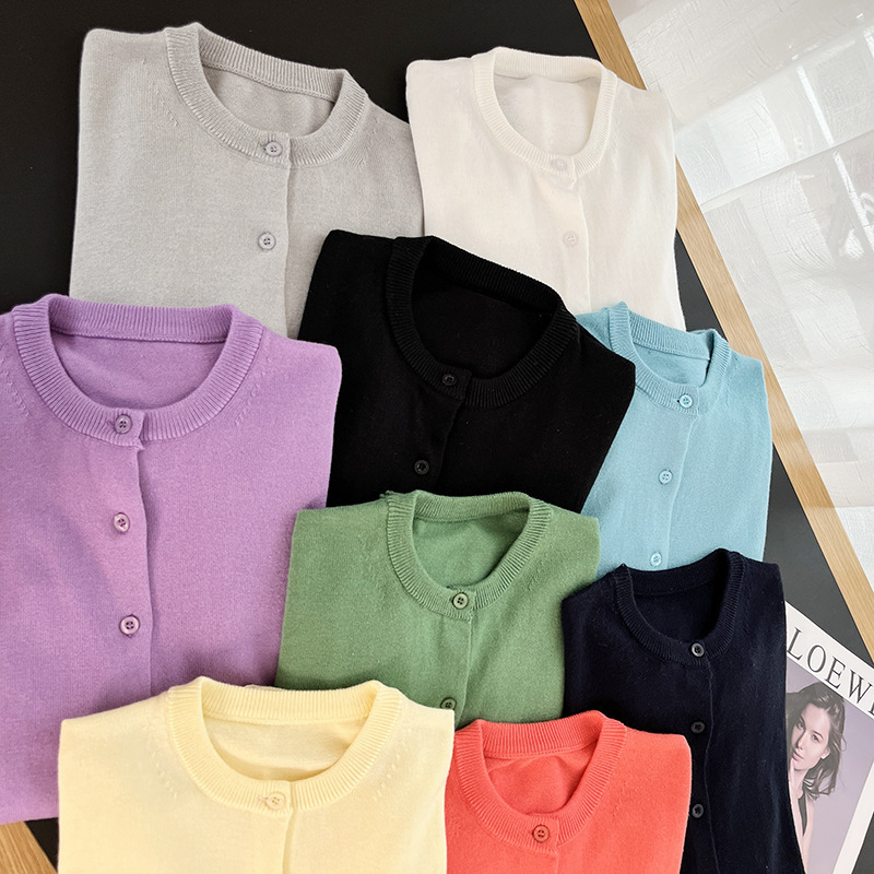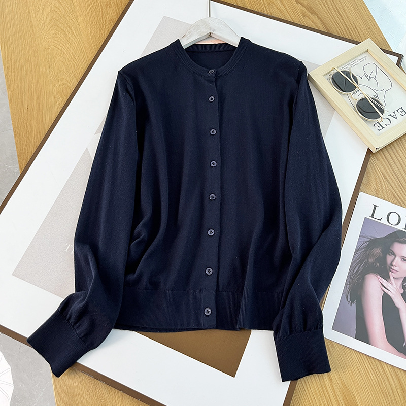 피팅 룸 2023 봄 새로운 라운드 넥 카디건 얇은 스웨터 코트 싱글 브레스트 긴 소매 바닥 셔츠 454764