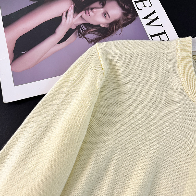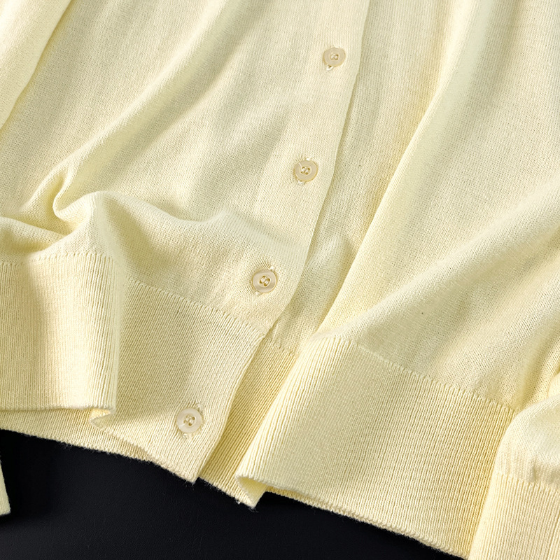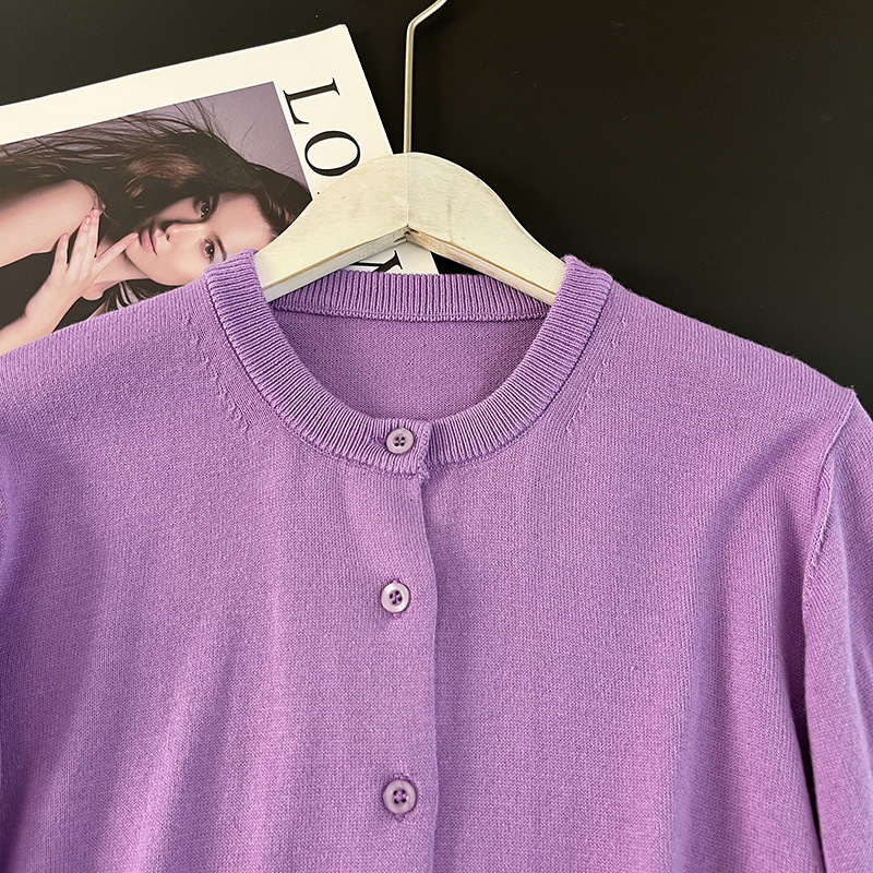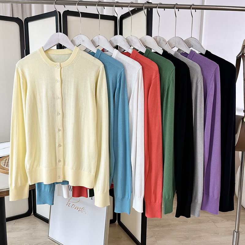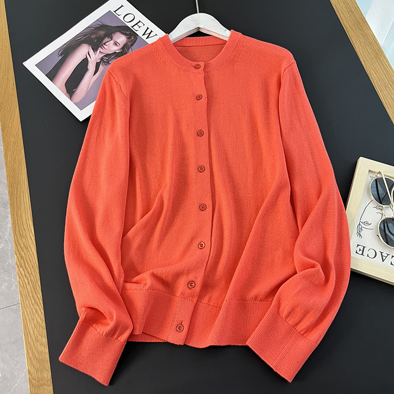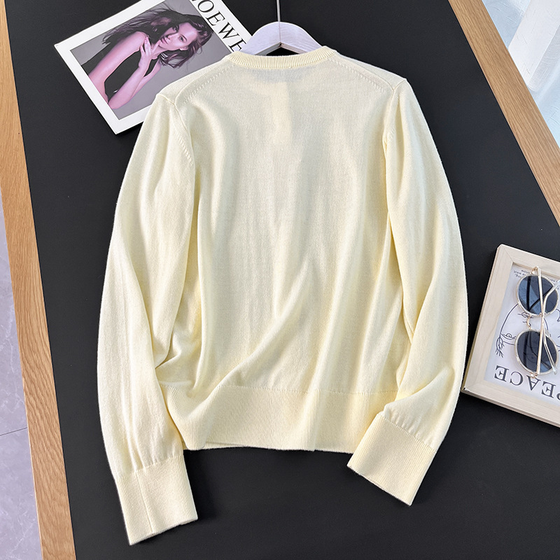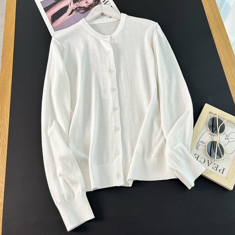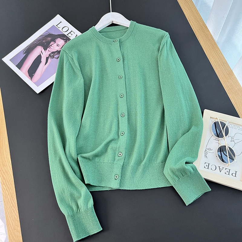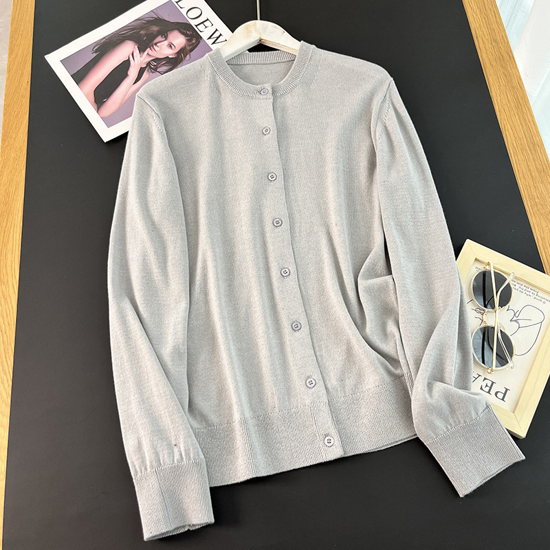 피팅 룸 2023 봄 새로운 라운드 넥 카디건 얇은 스웨터 코트 싱글 브레스트 긴 소매 바닥 셔츠 454764스토어 가기