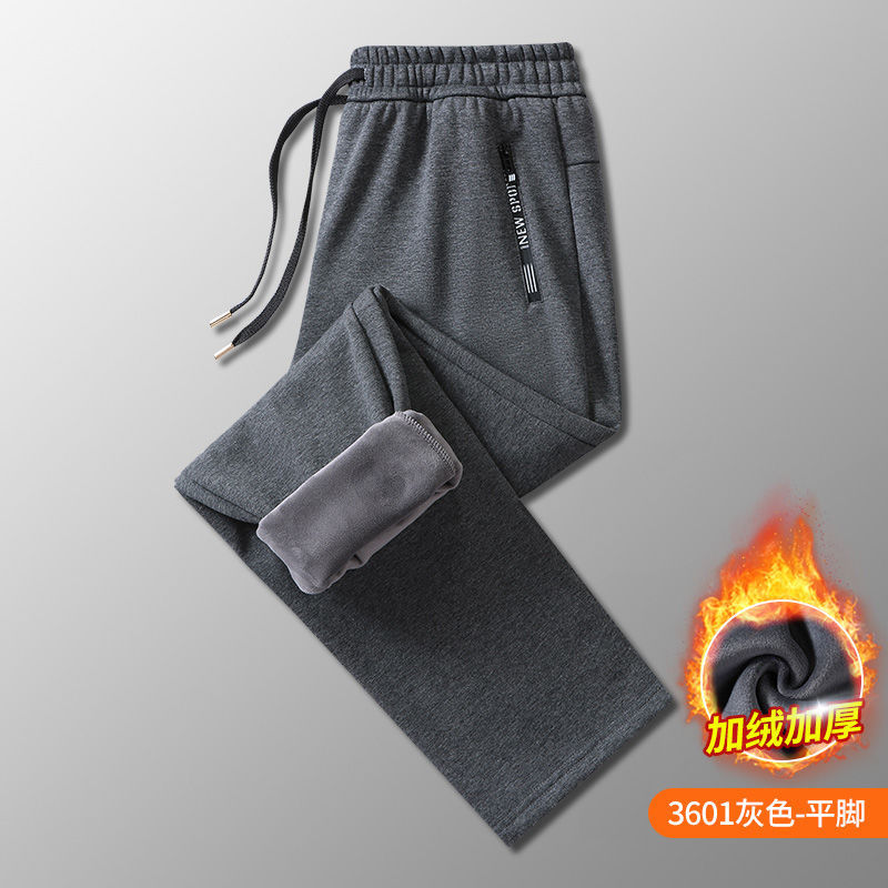 가을과 겨울 남성 바지 트렌디 한 남성용 느슨한 캐주얼 스트레이트 팬츠 기모 두꺼운 발목 묶인 스웨트 팬츠 스포츠 바지 남성용스토어 가기