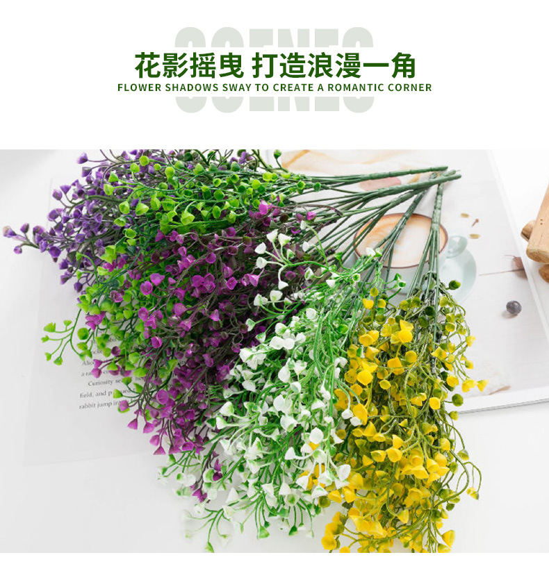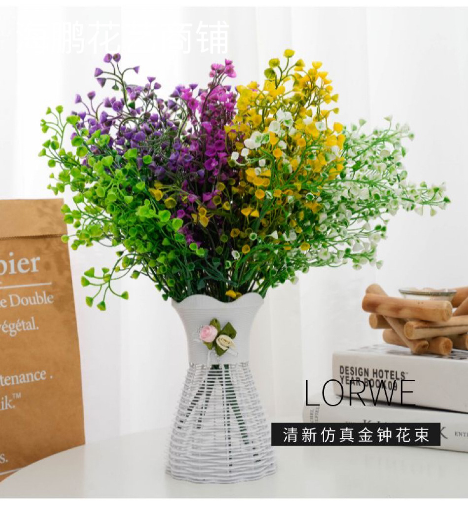 인공 골든 벨 버드 나무 꽃다발 트럼펫 꽃 벨 잔디 플라스틱 꽃 디스플레이 거실 물 잔디 물고기 탱크 웨딩 꽃 공장스토어 가기