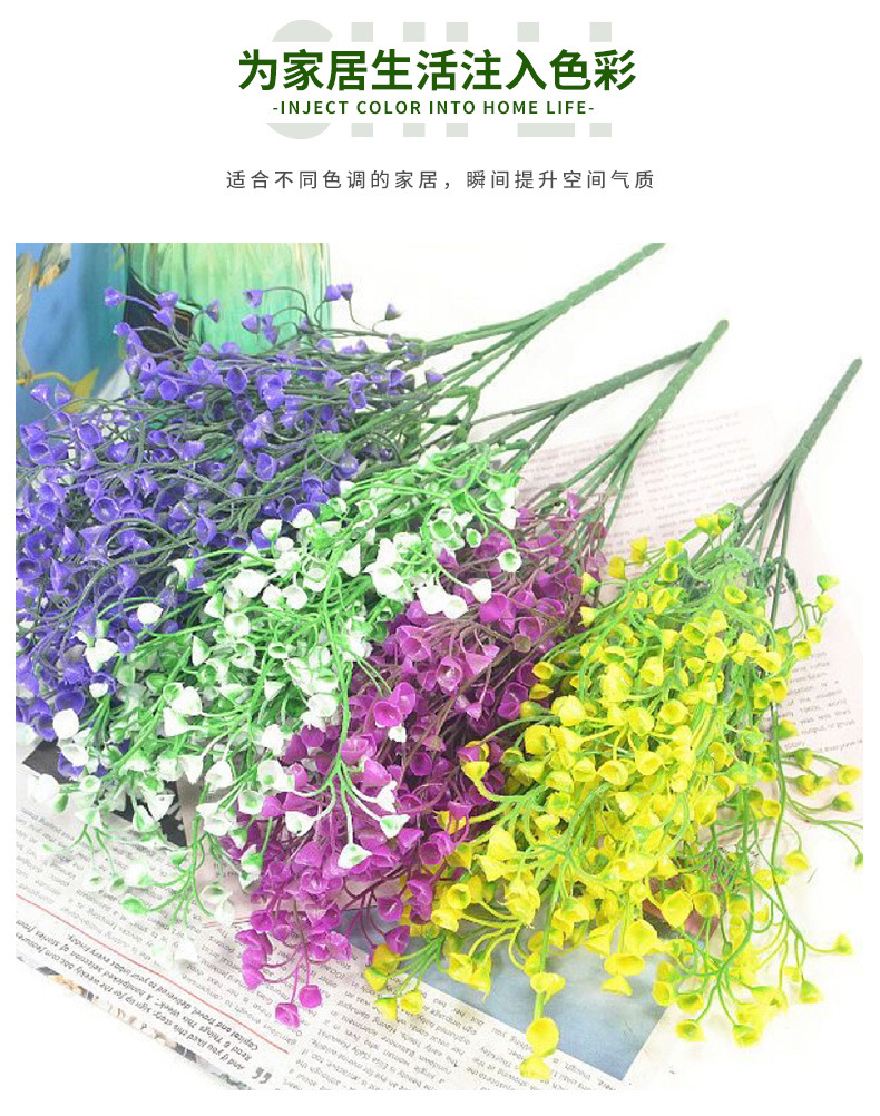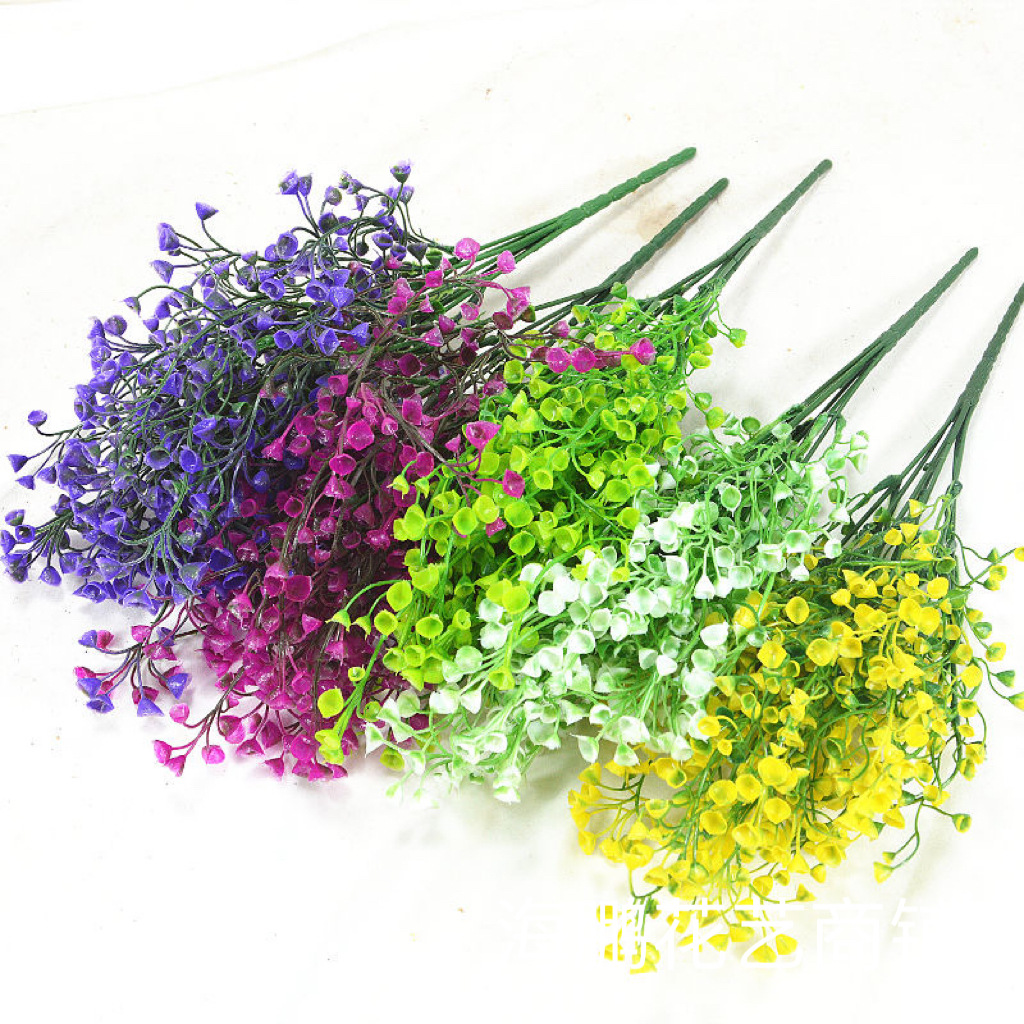 인공 골든 벨 버드 나무 꽃다발 트럼펫 꽃 벨 잔디 플라스틱 꽃 디스플레이 거실 물 잔디 물고기 탱크 웨딩 꽃 공장