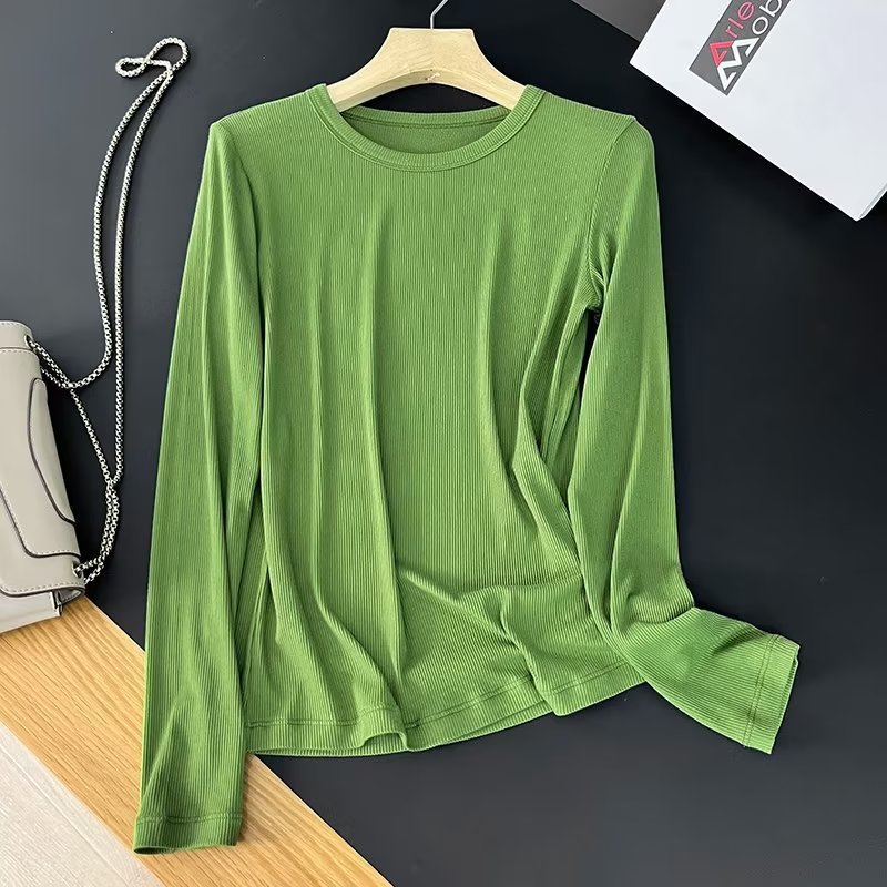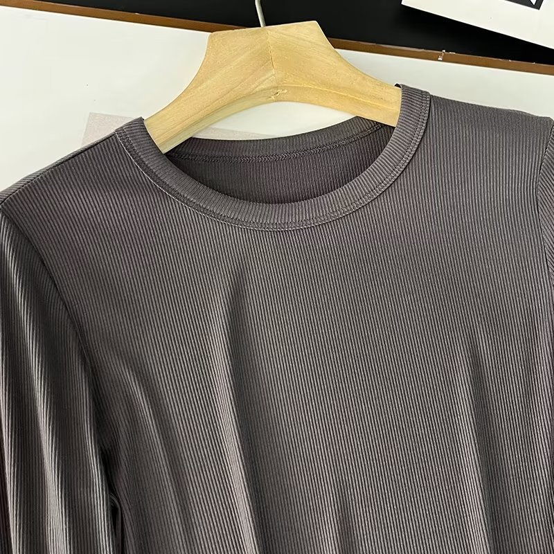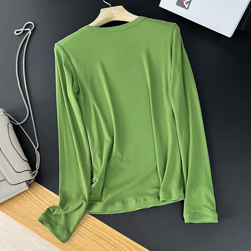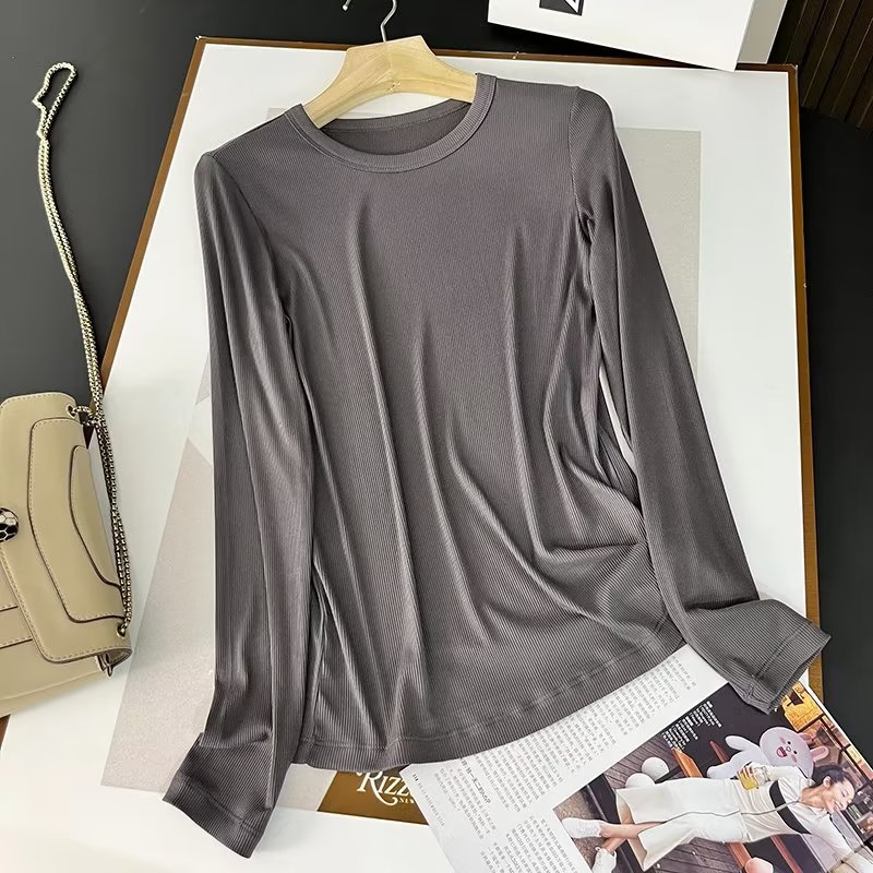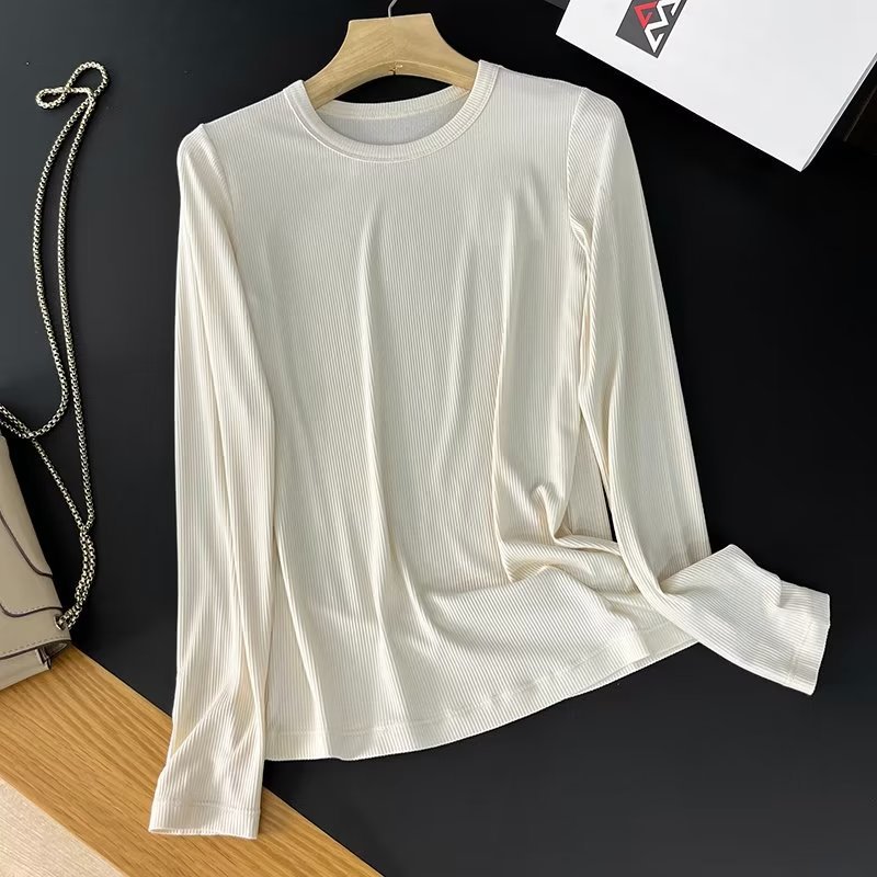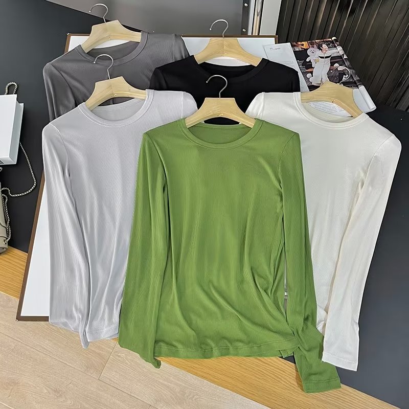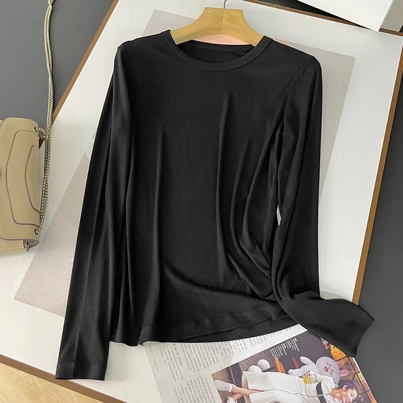 UJIA 피팅 룸 여성용 긴팔 튤 리브 경량 통기성 슬림 바닥 얇은 둥근 목 티셔츠 462128스토어 가기
