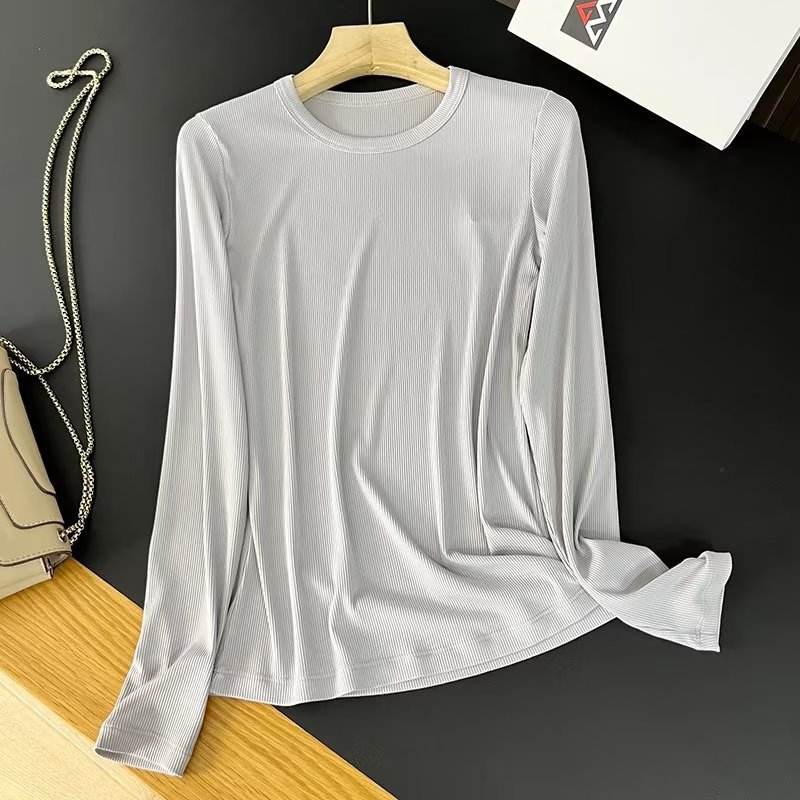 UJIA 피팅 룸 여성용 긴팔 튤 리브 경량 통기성 슬림 바닥 얇은 둥근 목 티셔츠 462128