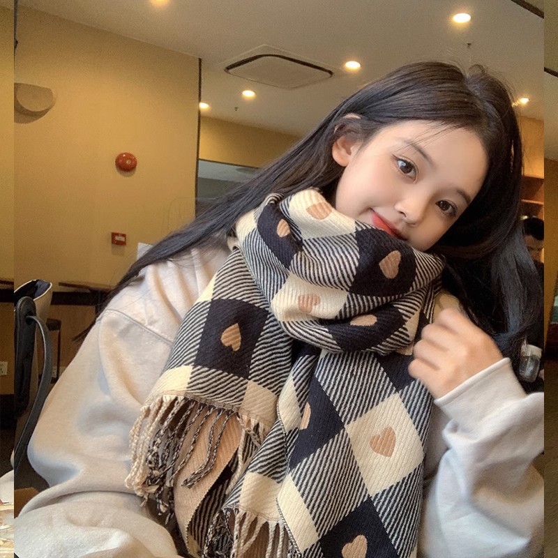 새로운 양면 격자 무늬 스카프 사랑 스카프 가을과 겨울 패션 올 매치 숄은 두꺼운 따뜻한 스카프 도매스토어 가기