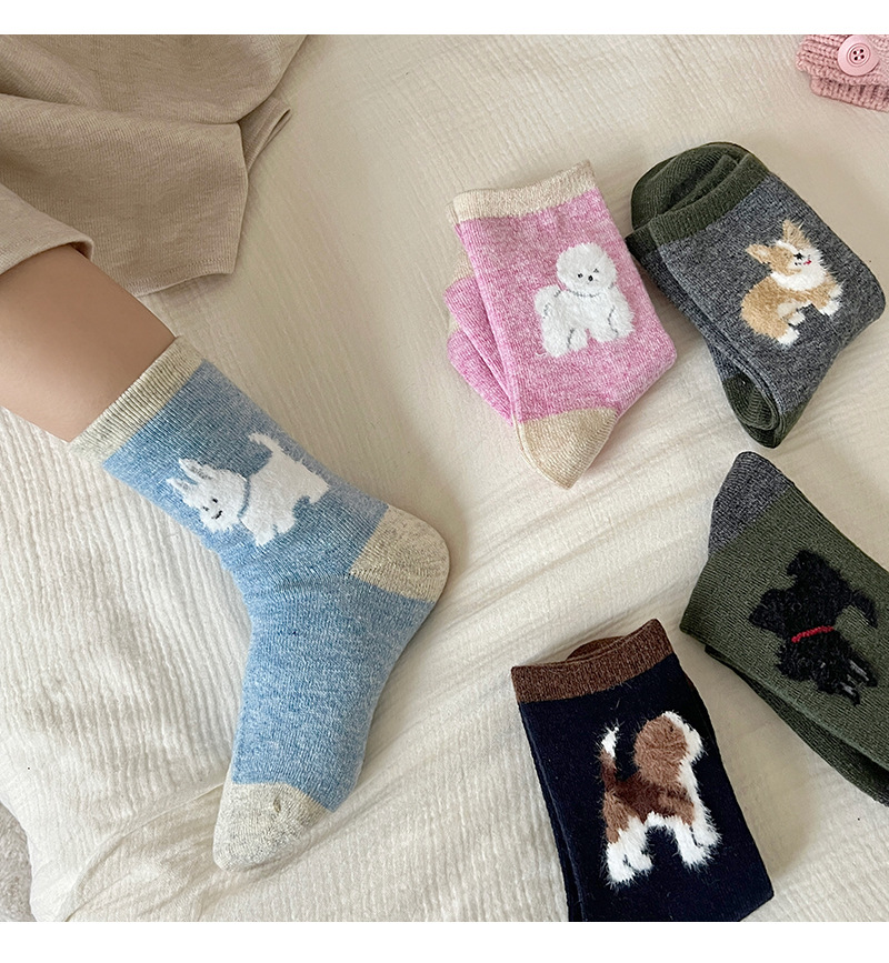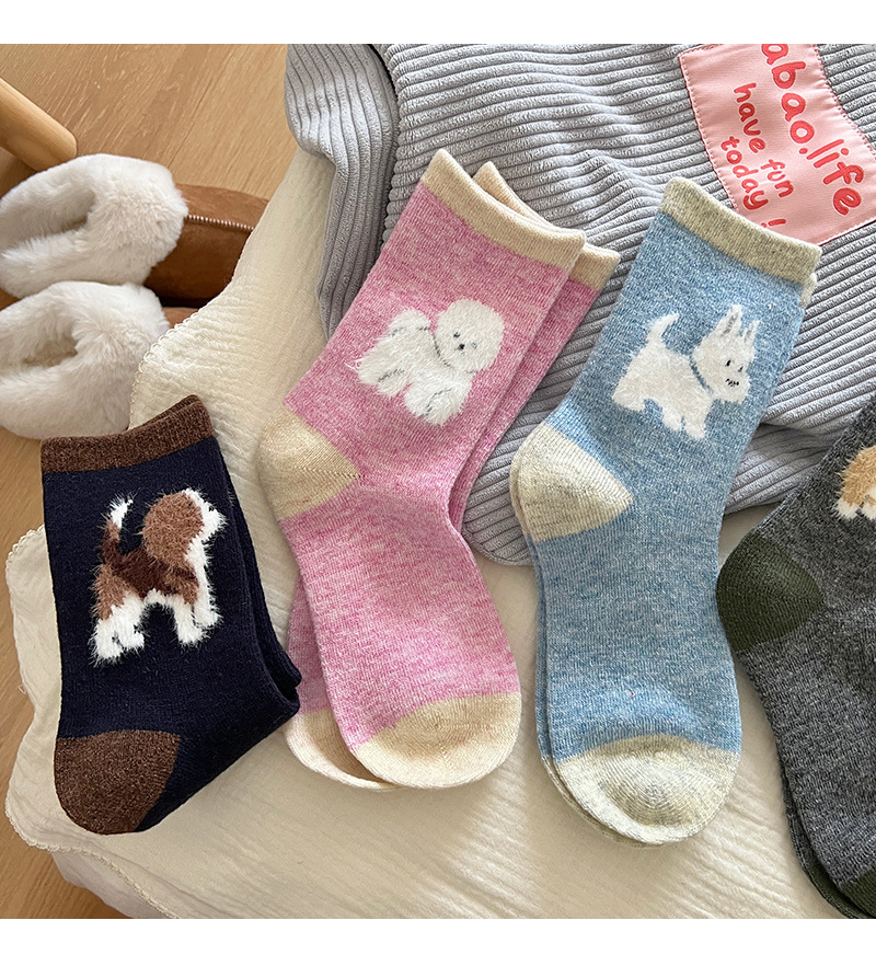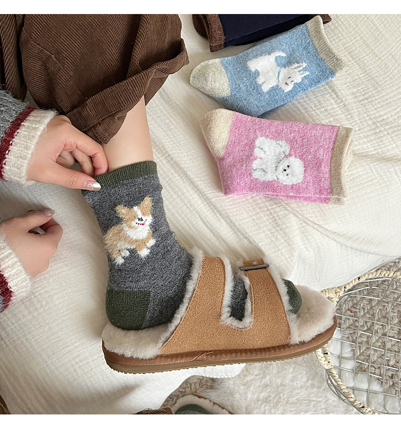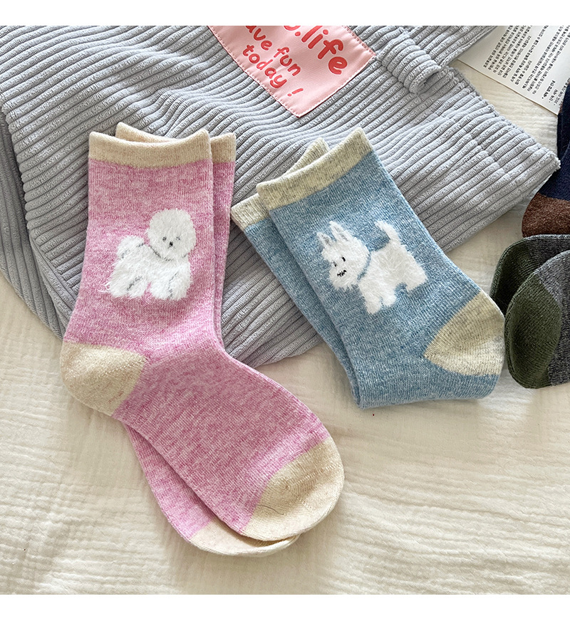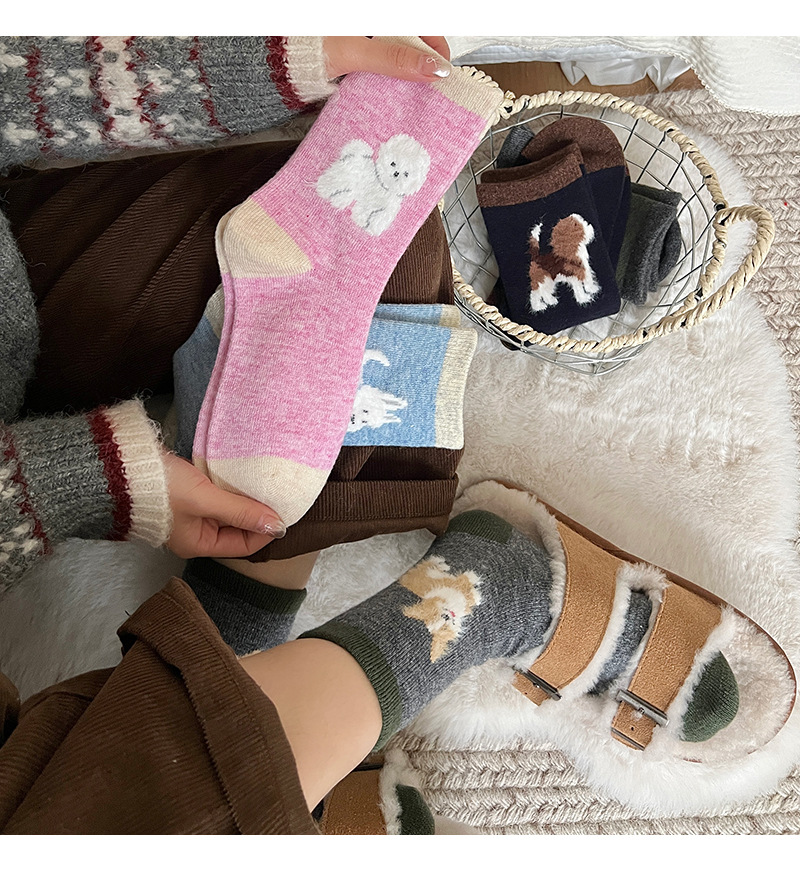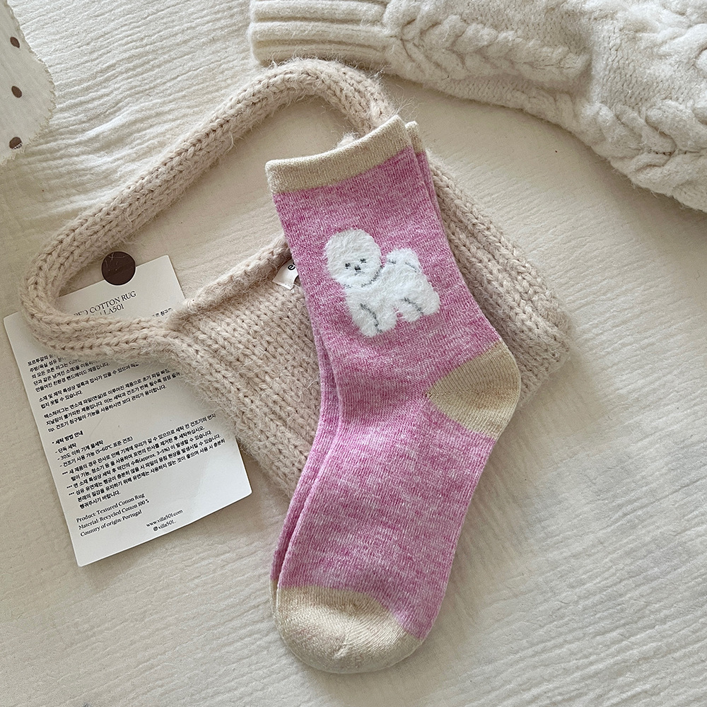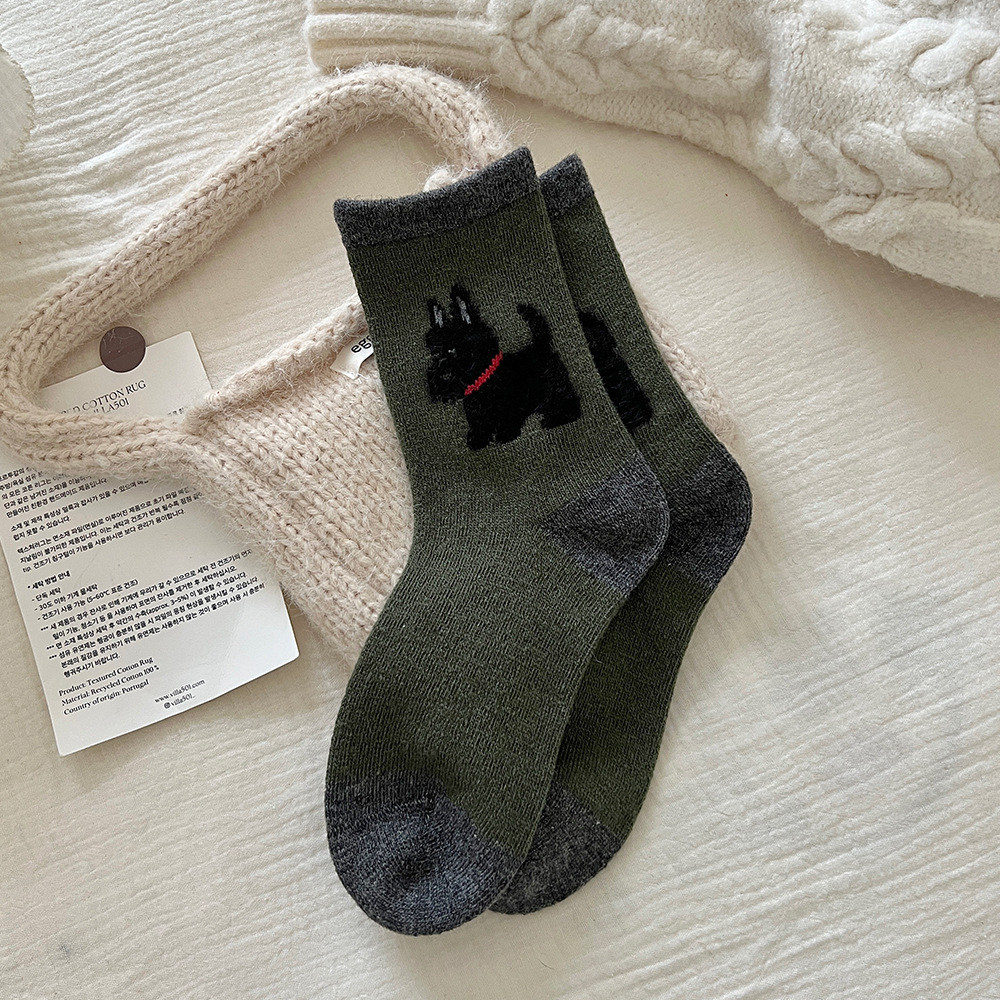 17% 양모 하이 퀄리티 "강아지끼리 뼈없는 양모 양말 여성 중견 두꺼운 색조 한국식 스태킹 양말스토어 가기