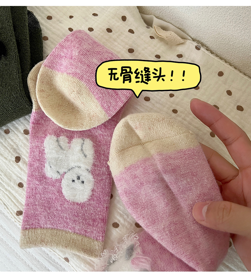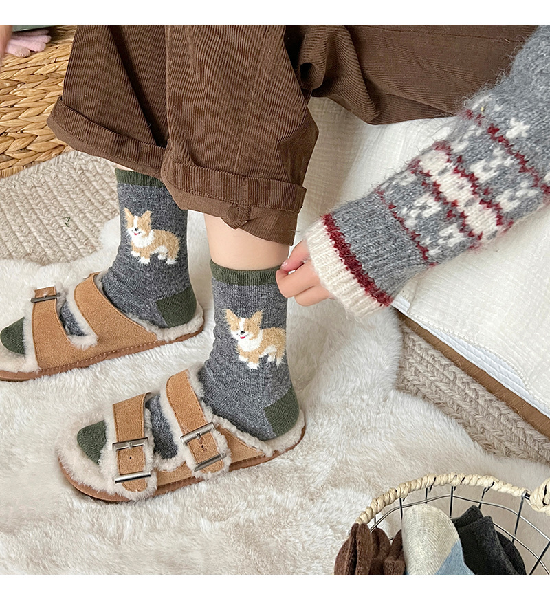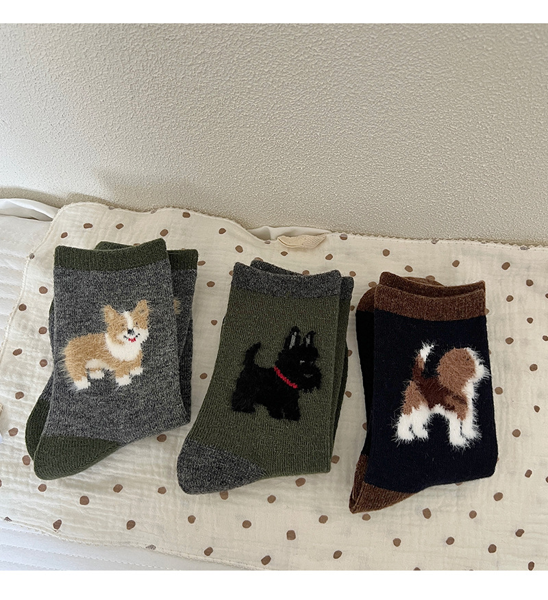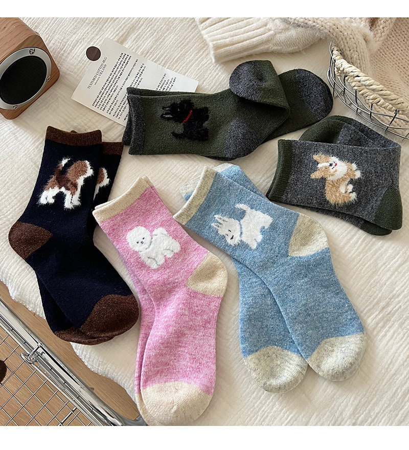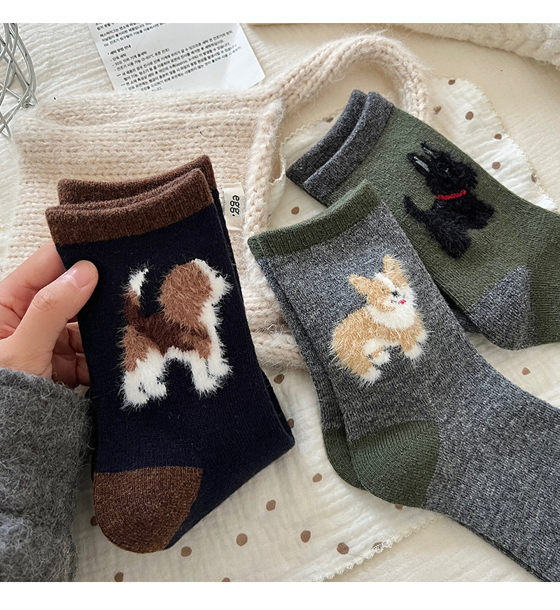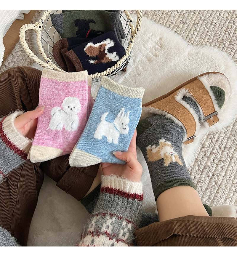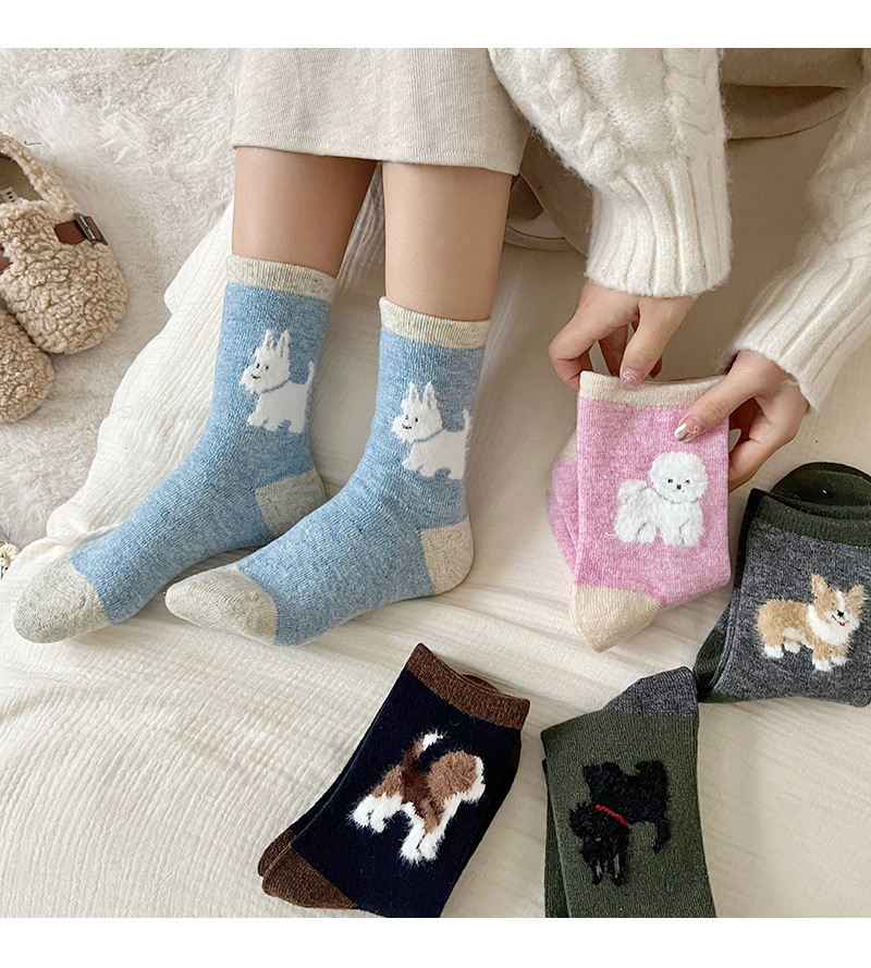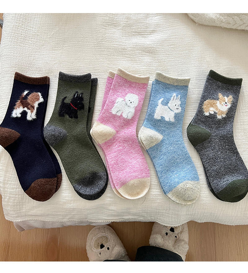 17% 양모 하이 퀄리티 "강아지끼리 뼈없는 양모 양말 여성 중견 두꺼운 색조 한국식 스태킹 양말스토어 가기