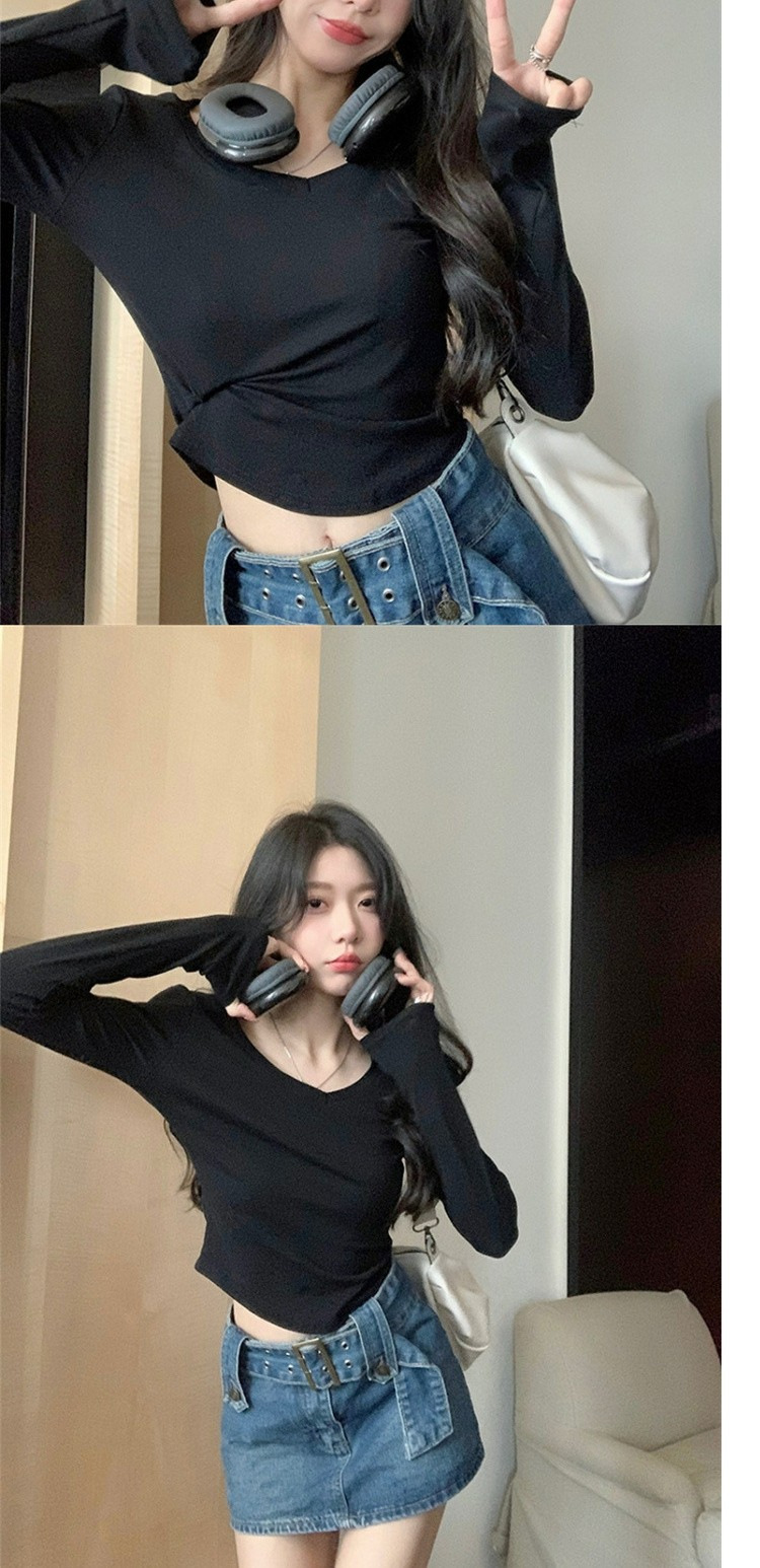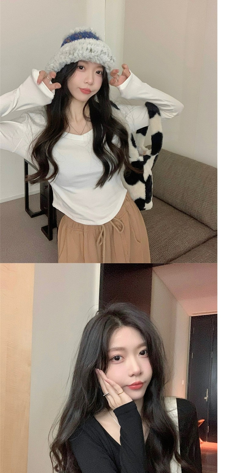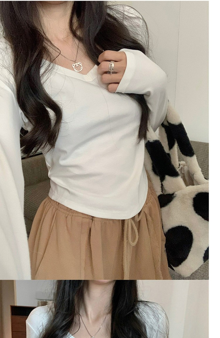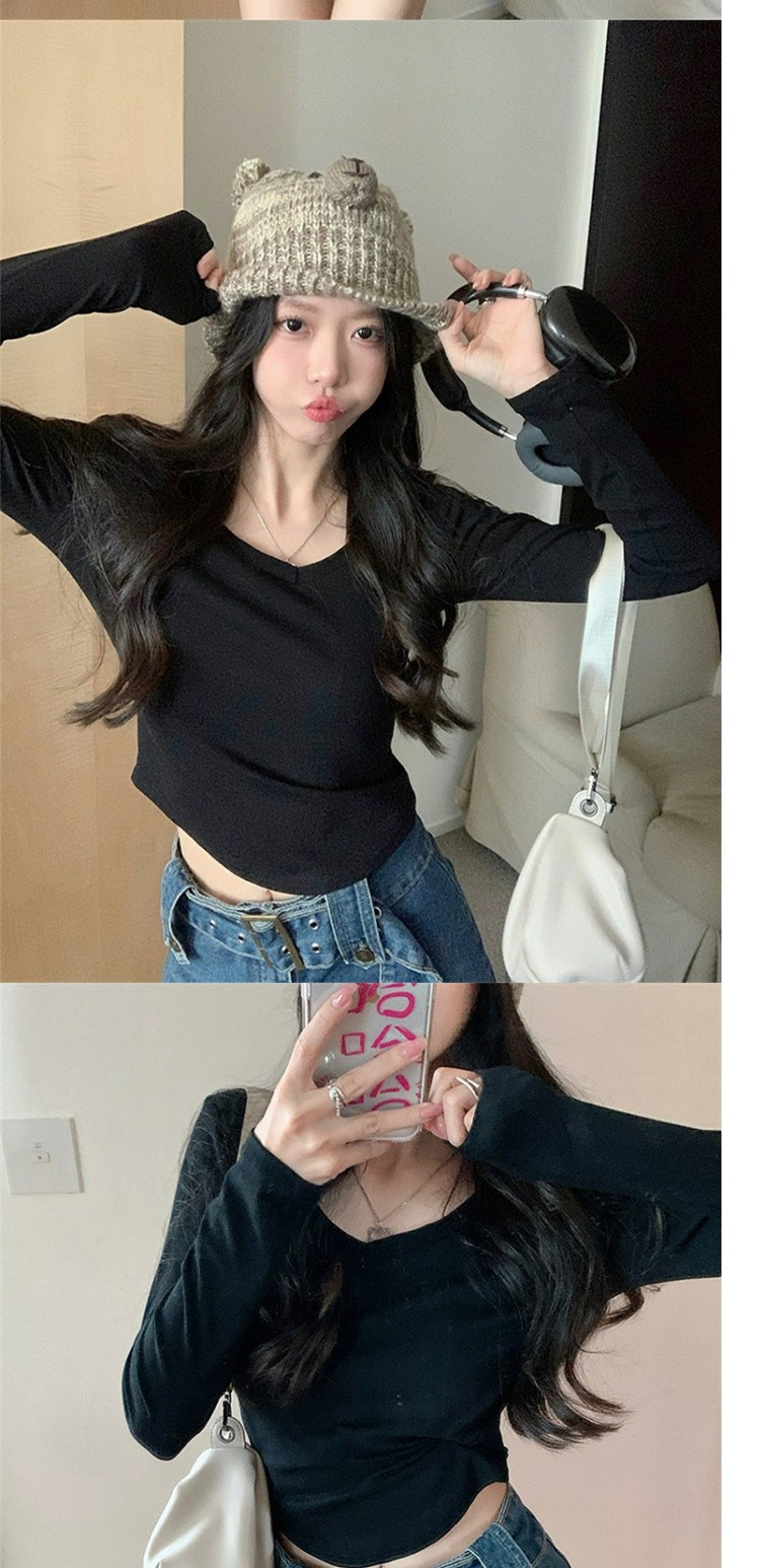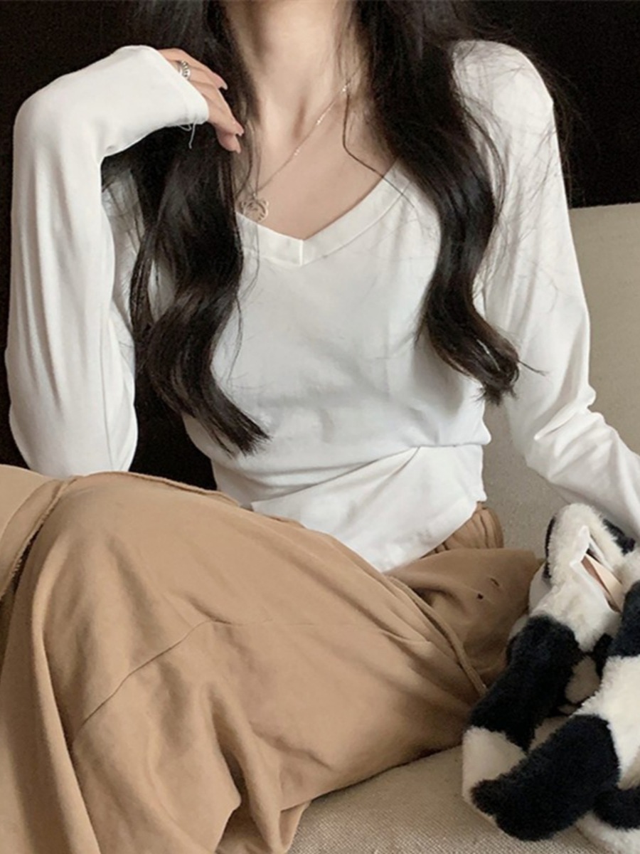 드 벨벳 리브 90 폴리 에스터 10 스판덱스 V 넥 긴팔 티셔츠 여성의 초가을 슬리밍 순수 스타일스토어 가기