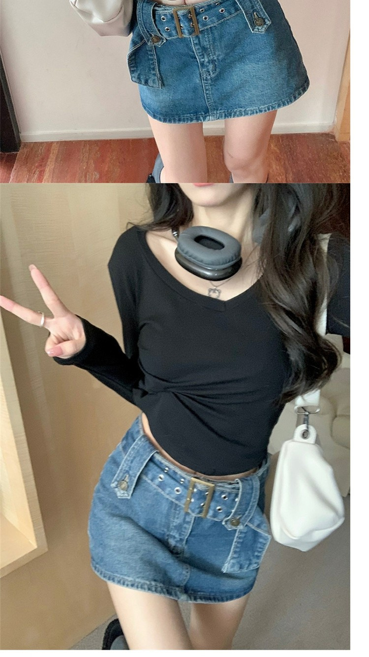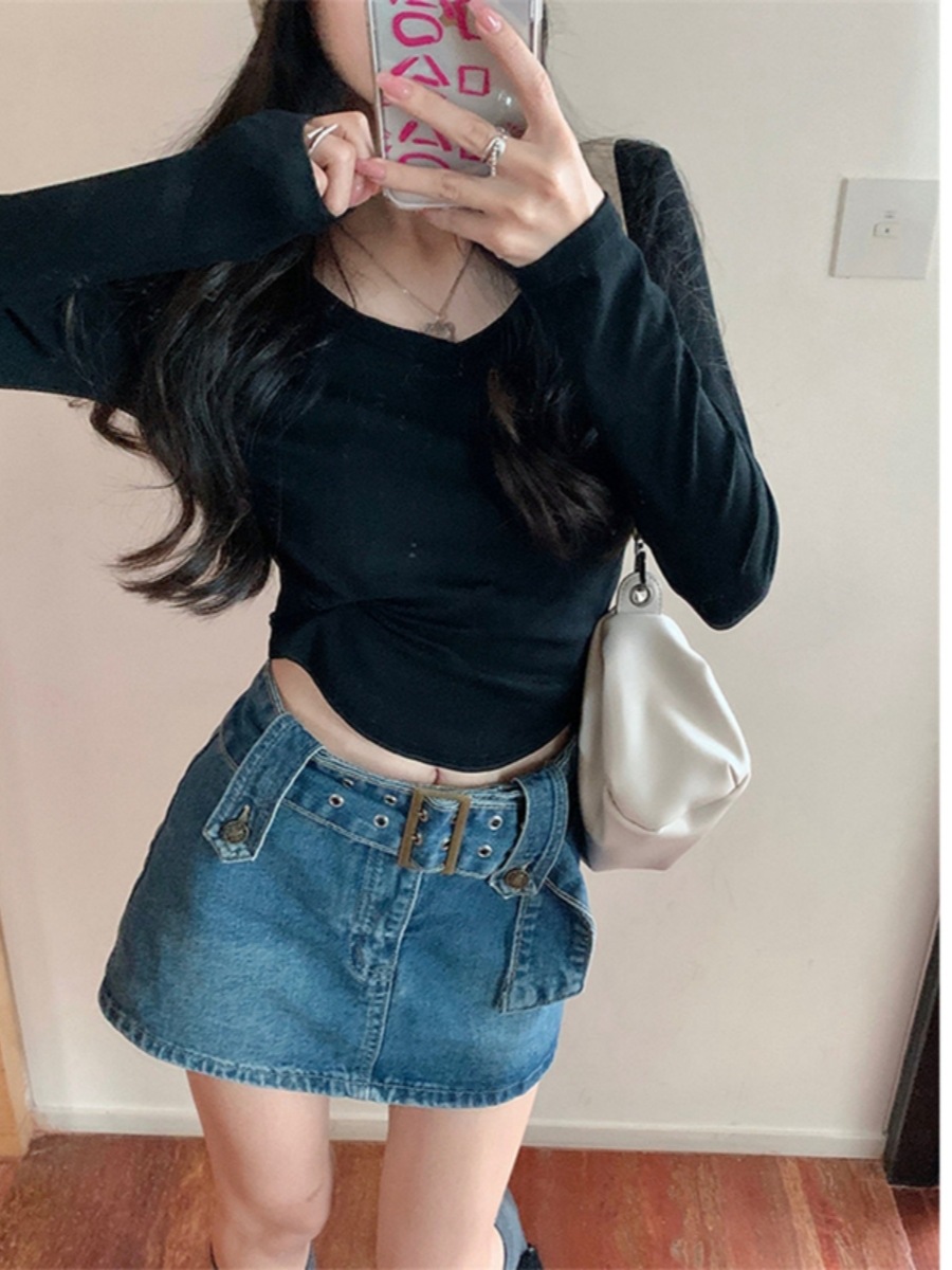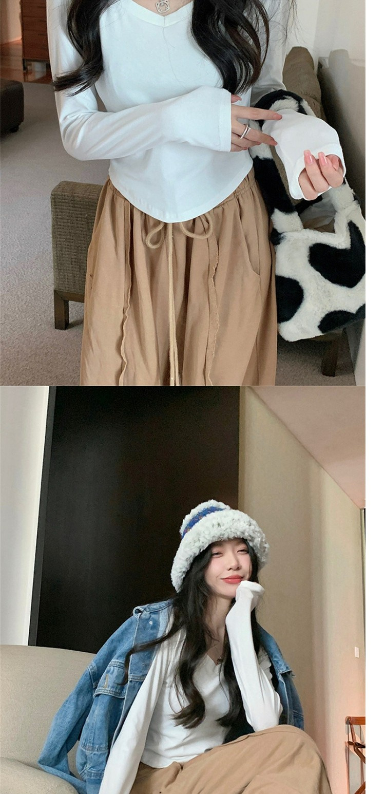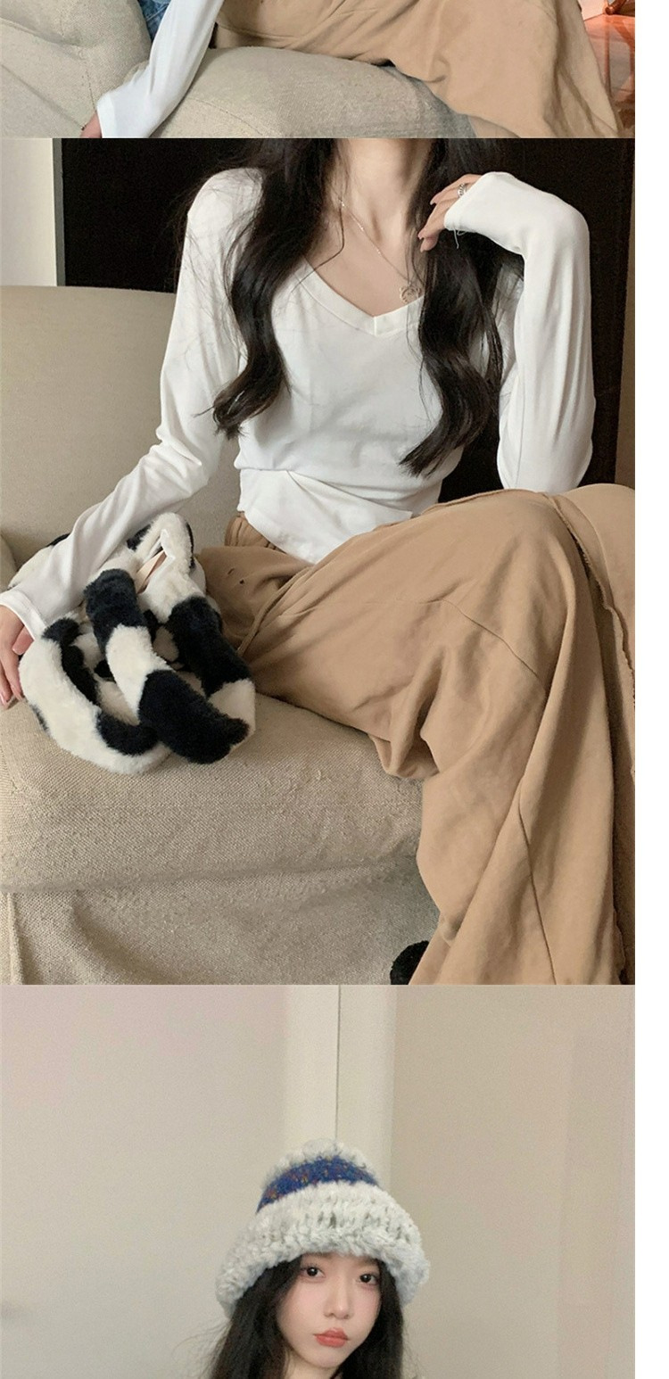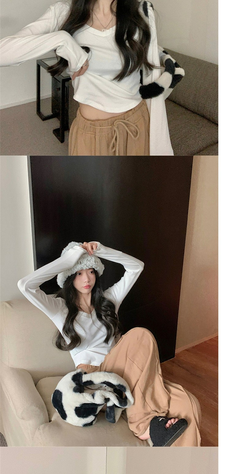 드 벨벳 리브 90 폴리 에스터 10 스판덱스 V 넥 긴팔 티셔츠 여성의 초가을 슬리밍 순수 스타일스토어 가기