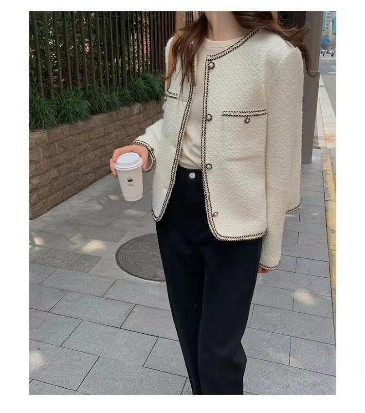 프랑스 사교계 샤넬 스타일 코트 여성 의류 봄과 가을 2023 새로운 작은 고급 기질 올 매치 탑