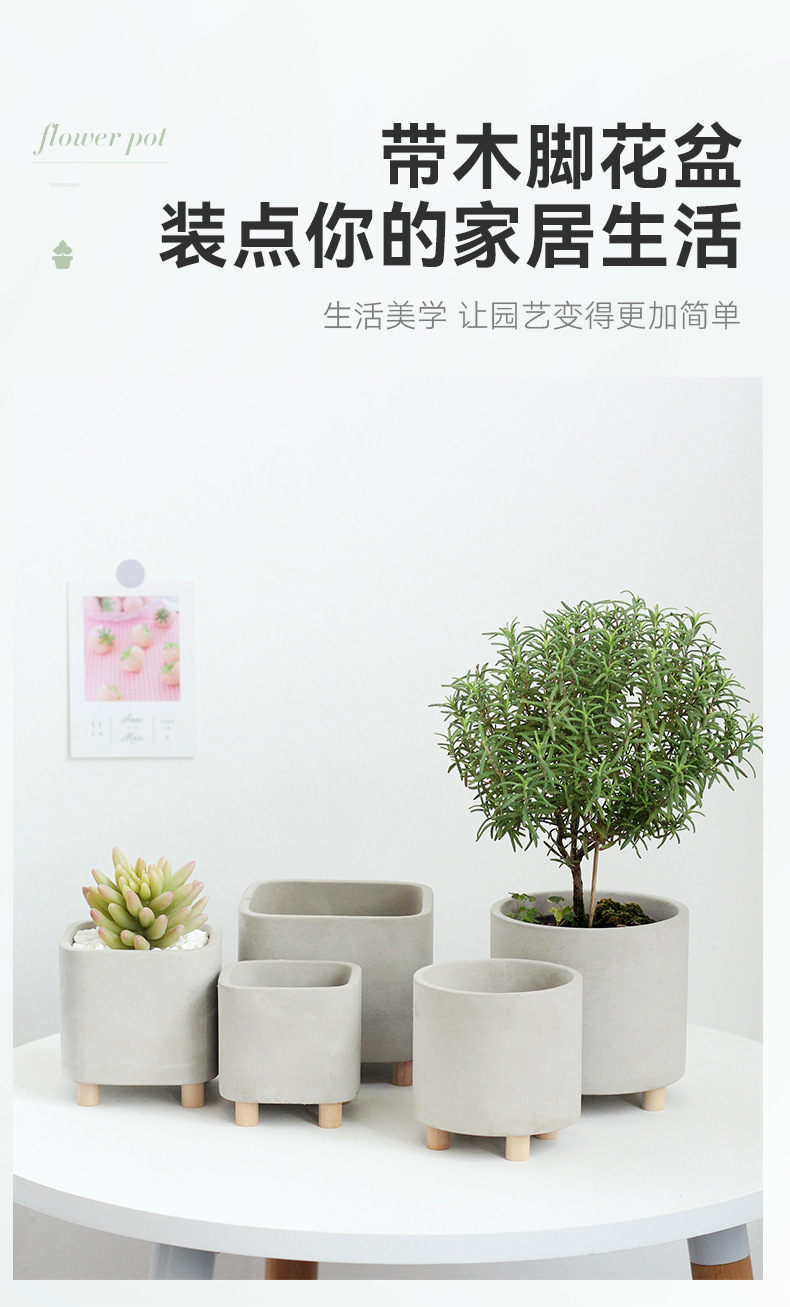 창조적 인 일본식 시멘트 화분 광장 나무 사각형 냄비 다리 사각형 냄비 발 즙이 많은 테이블 냄비 작은스토어 가기
