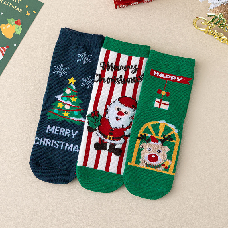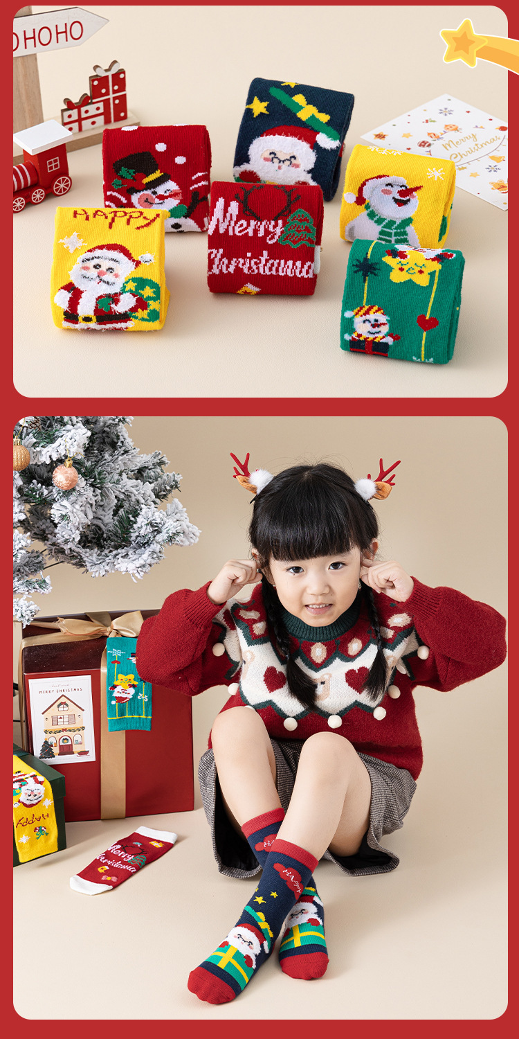 가을 겨울 어린이 크리스마스 양말 남아 여아 양말 만화 중목 양말 유아용 양말 중대형 어린이용 A급 양말 도매
