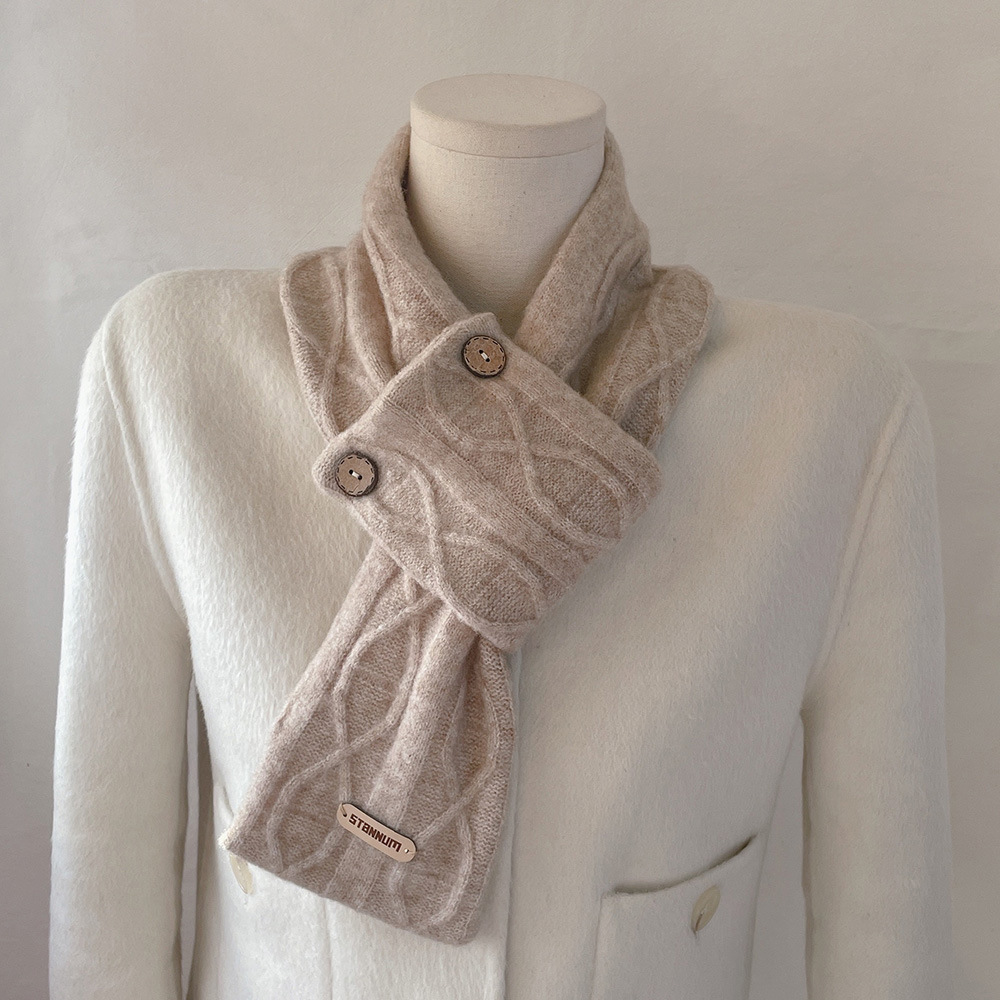 한국 인 스타일 고급 울 캐시미어 버튼 크로스 스카프 여성 겨울 학생 따뜻한 스카프 예술스토어 가기