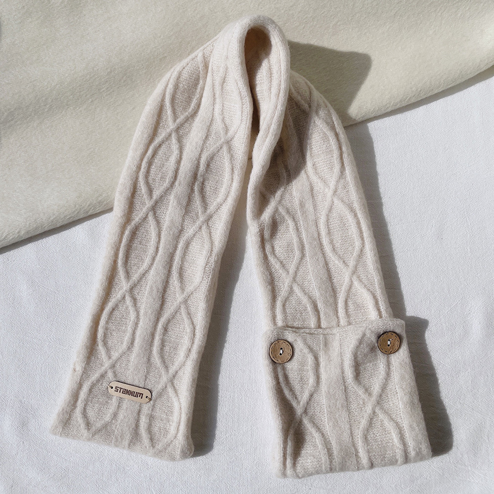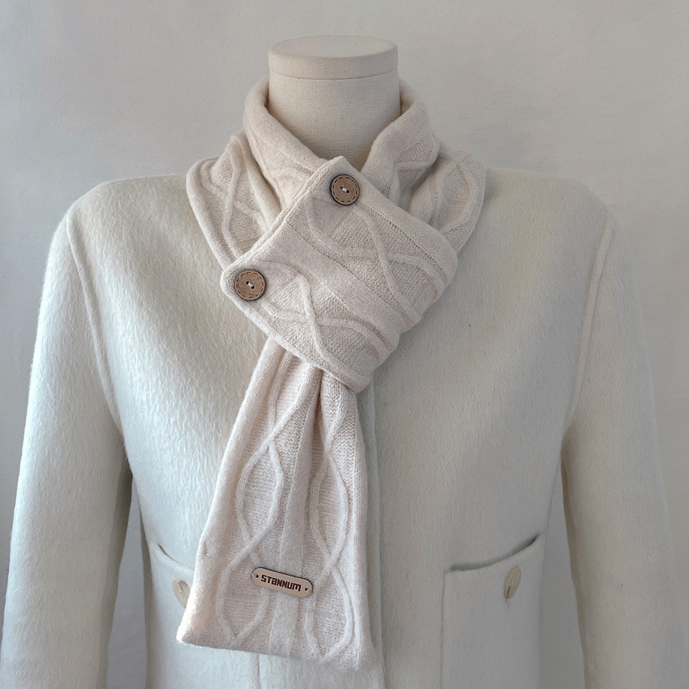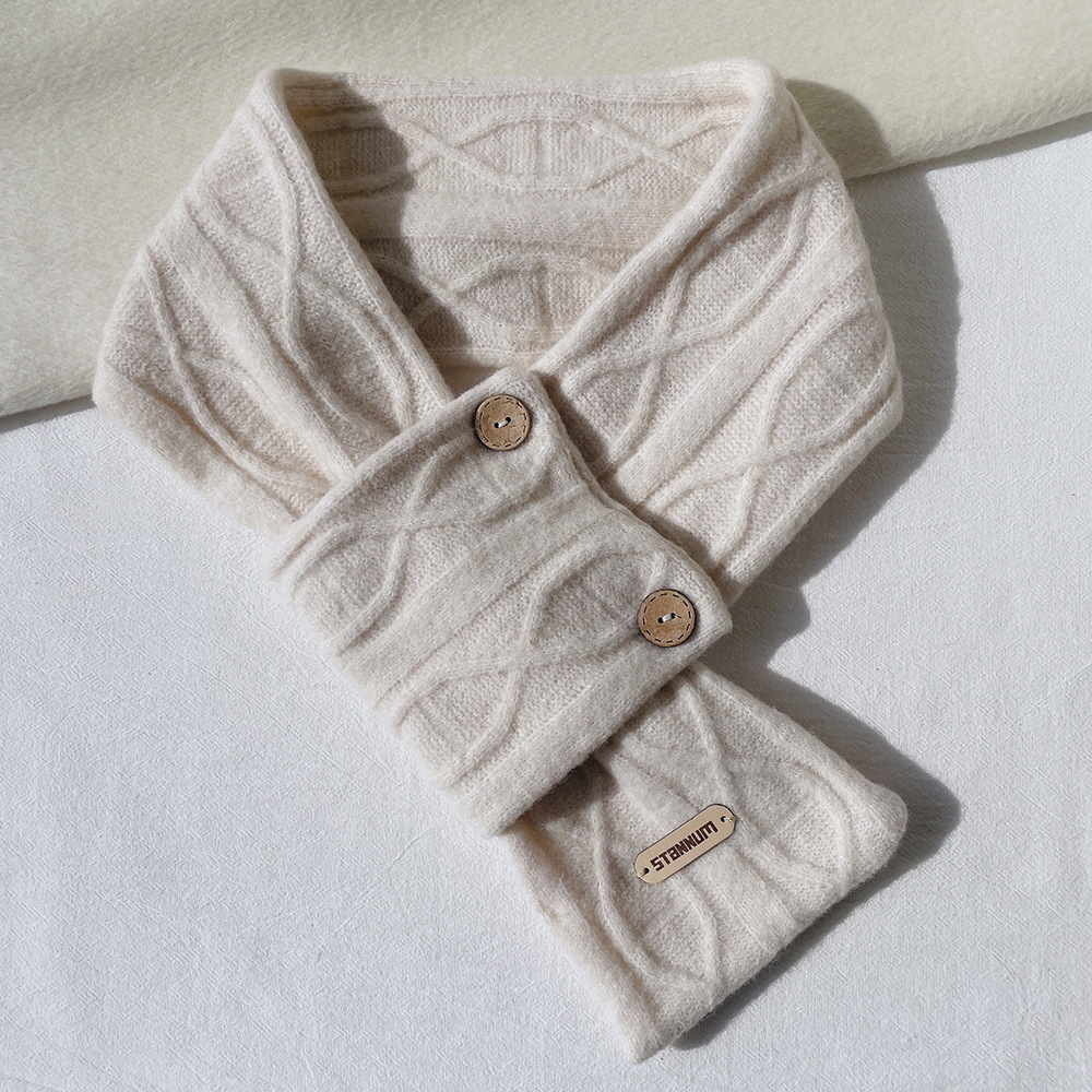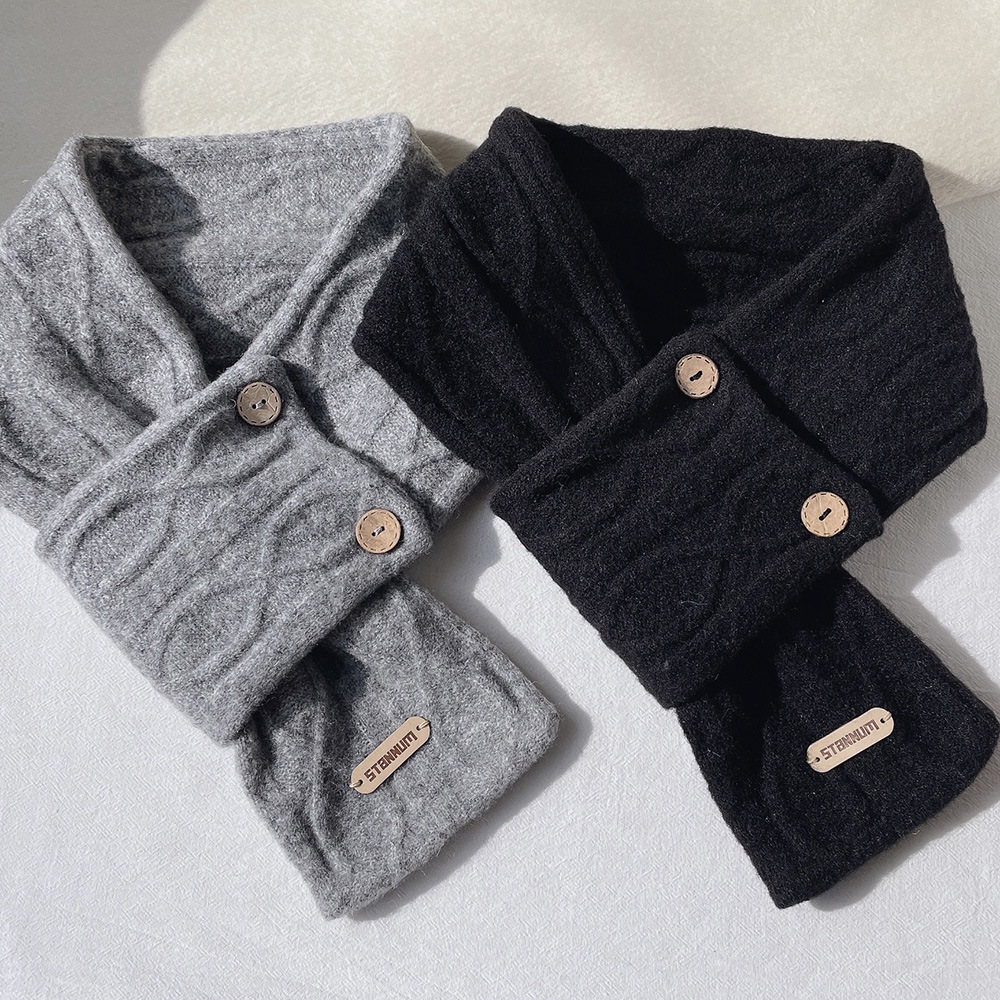 한국 인 스타일 고급 울 캐시미어 버튼 크로스 스카프 여성 겨울 학생 따뜻한 스카프 예술