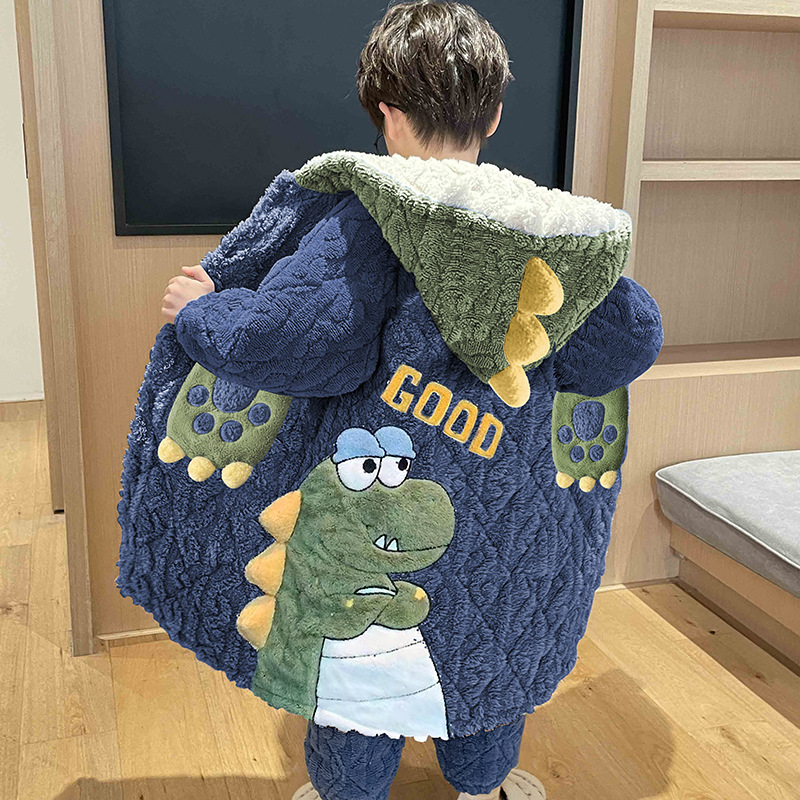 겨울 소년의 3 층 퀼트 중간 길이 플란넬 만화 홈 두꺼운 산호 양털 어린이 잠옷 세트 착용