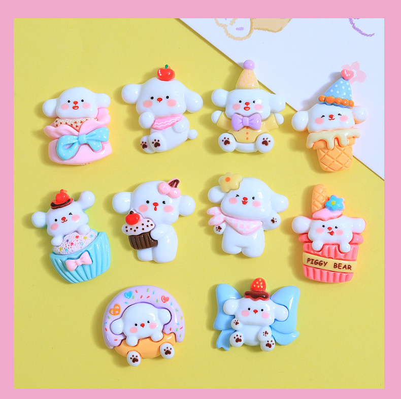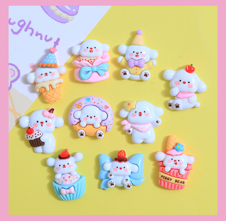 디저트 흰 개 만화 수지 액세서리 diy 작은 보석 크림 접착제 액세서리 수제 펜던트 머리핀 소재
